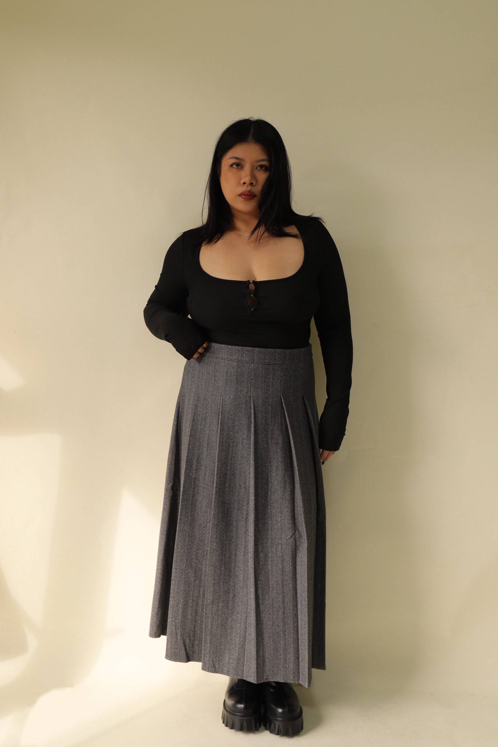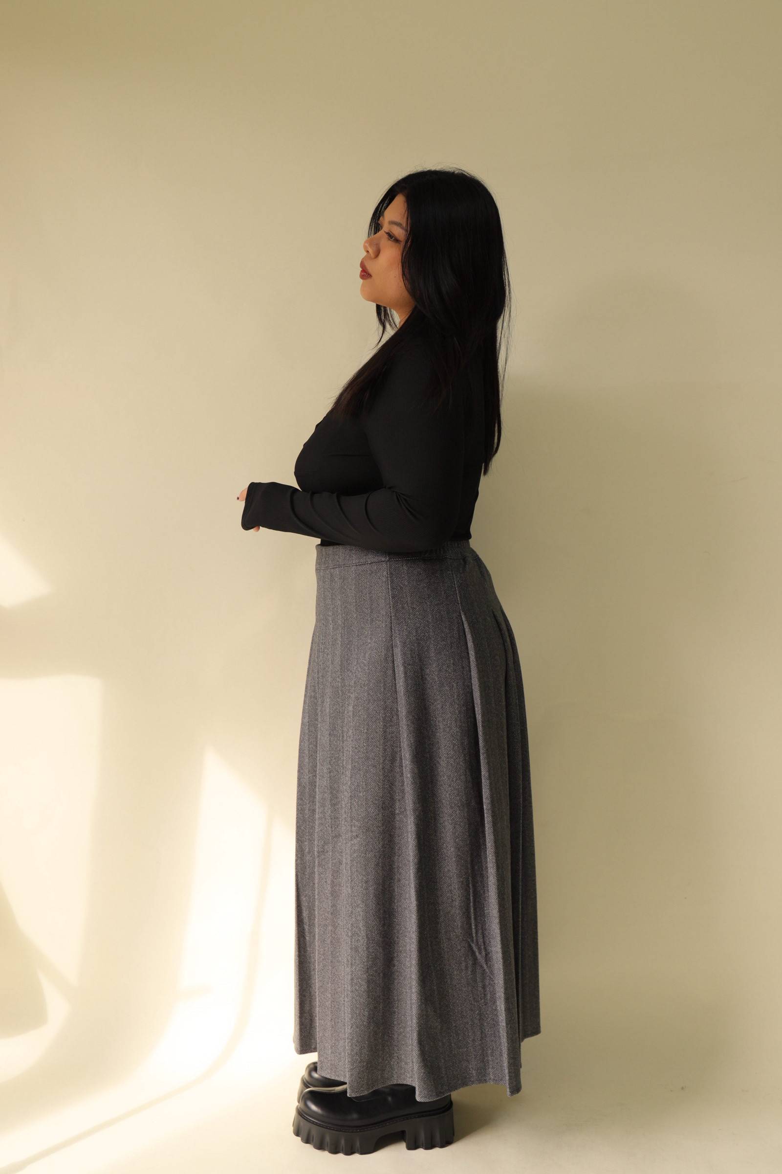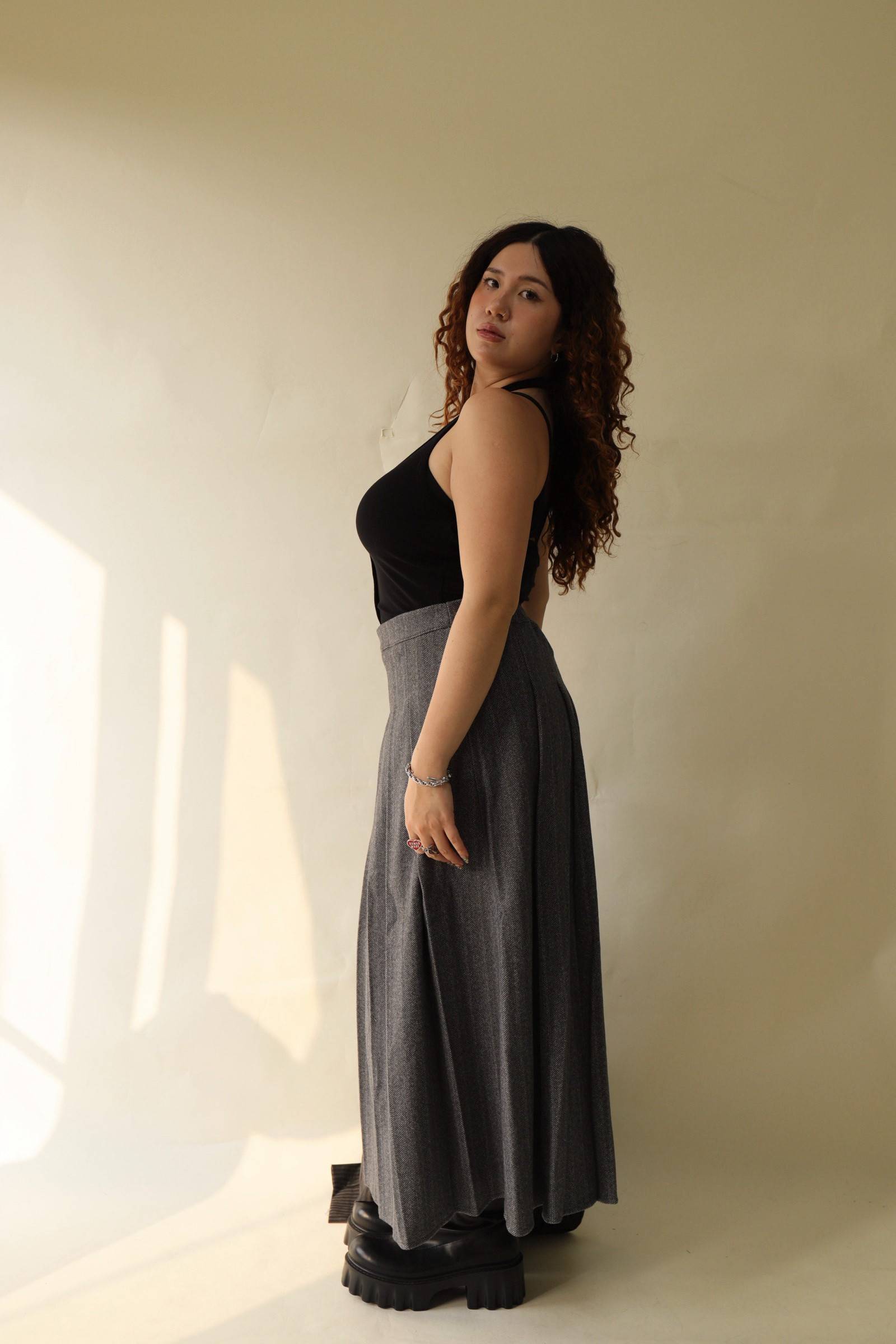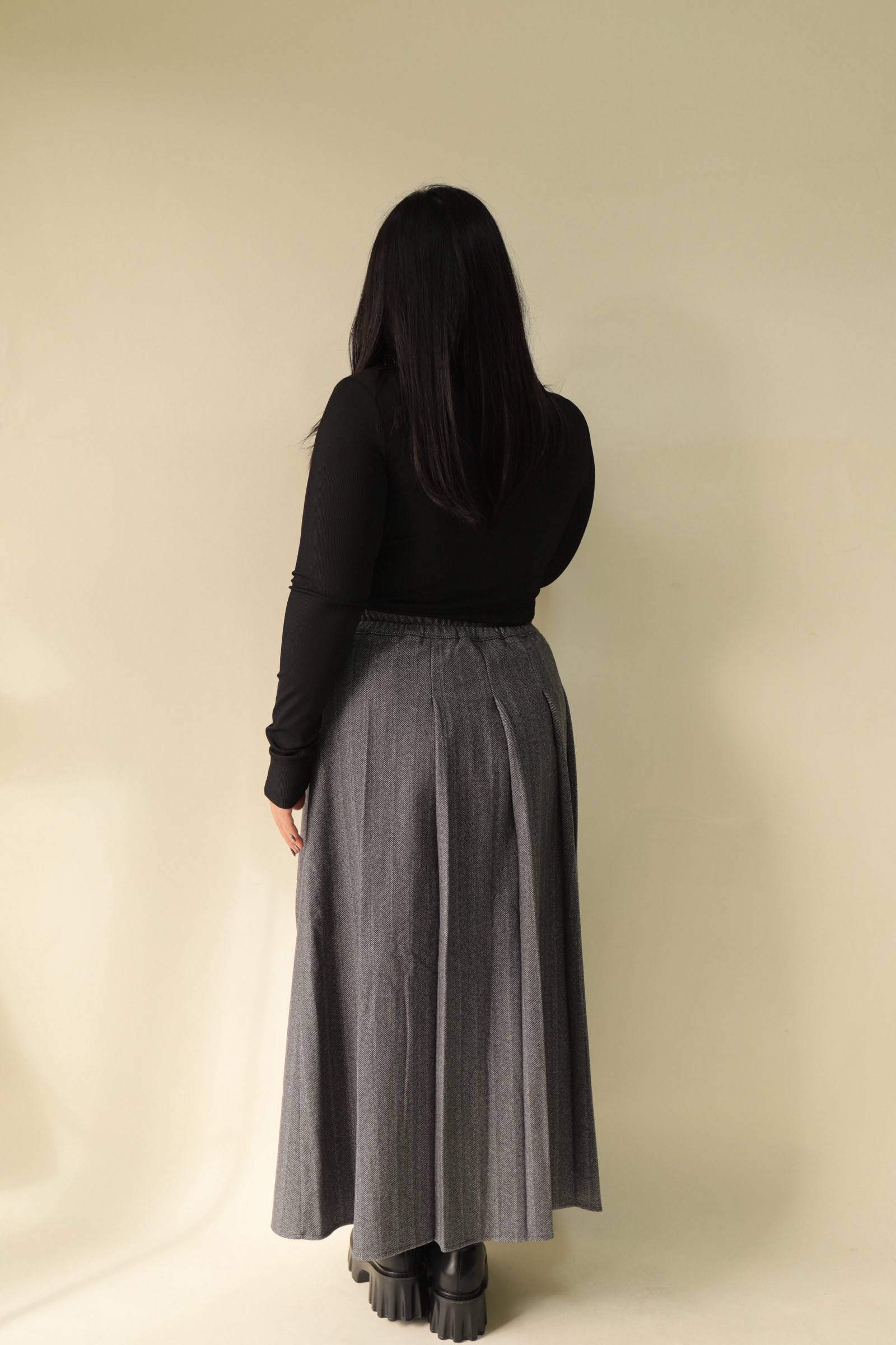 【EASE】高級感亞麻灰重工西裝百摺裙