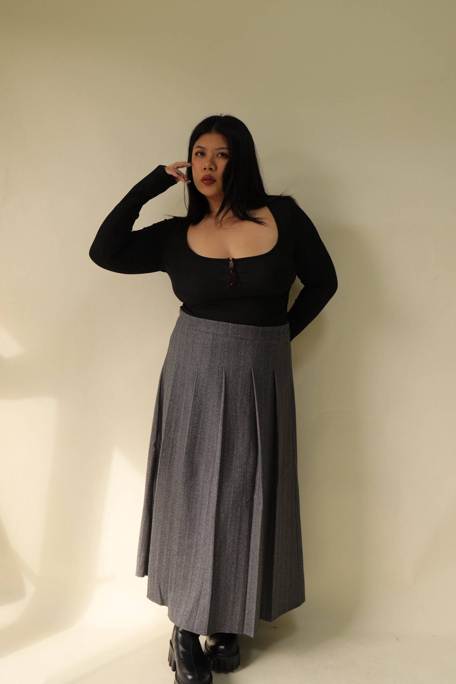 【EASE】高級感亞麻灰重工西裝百摺裙,LEILASHAW 你的美不該被數字綁架