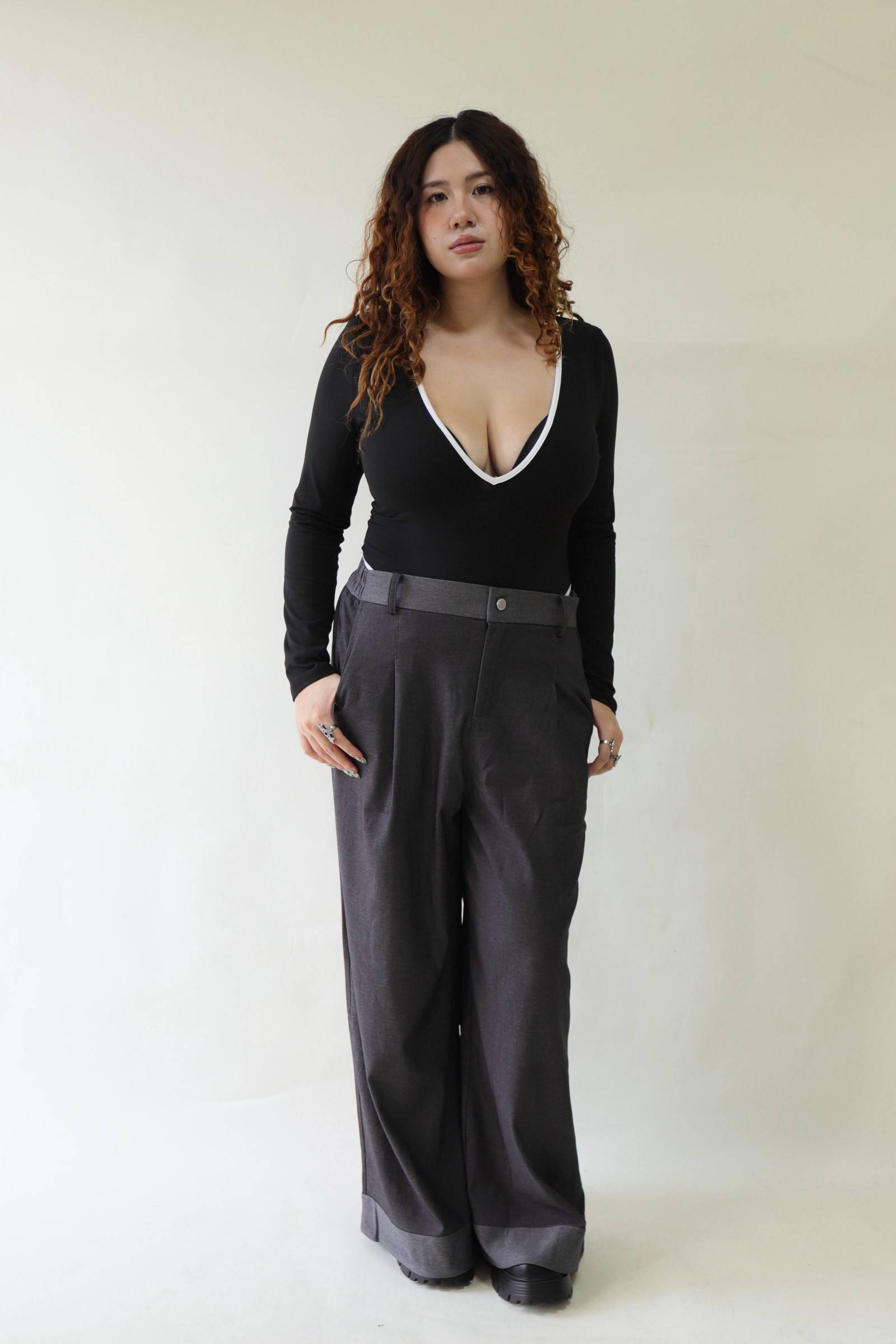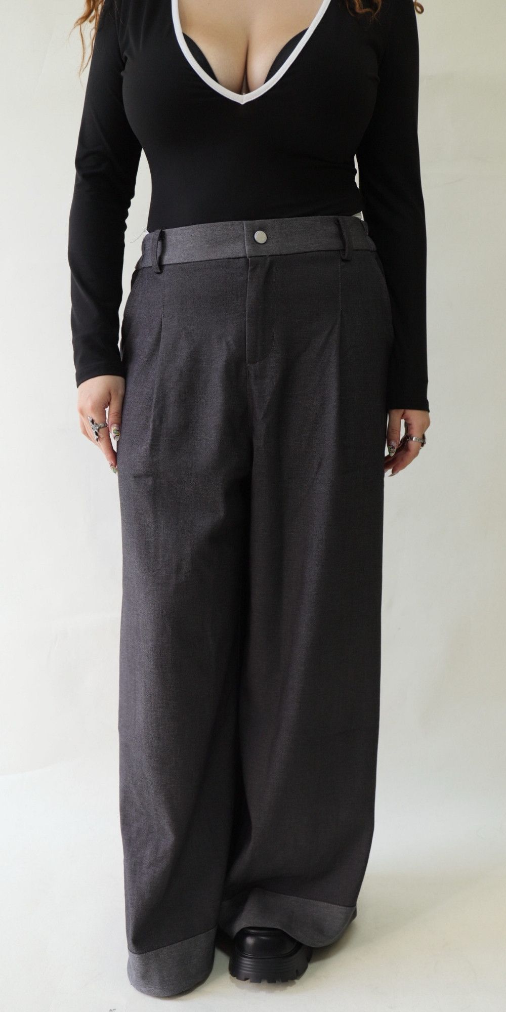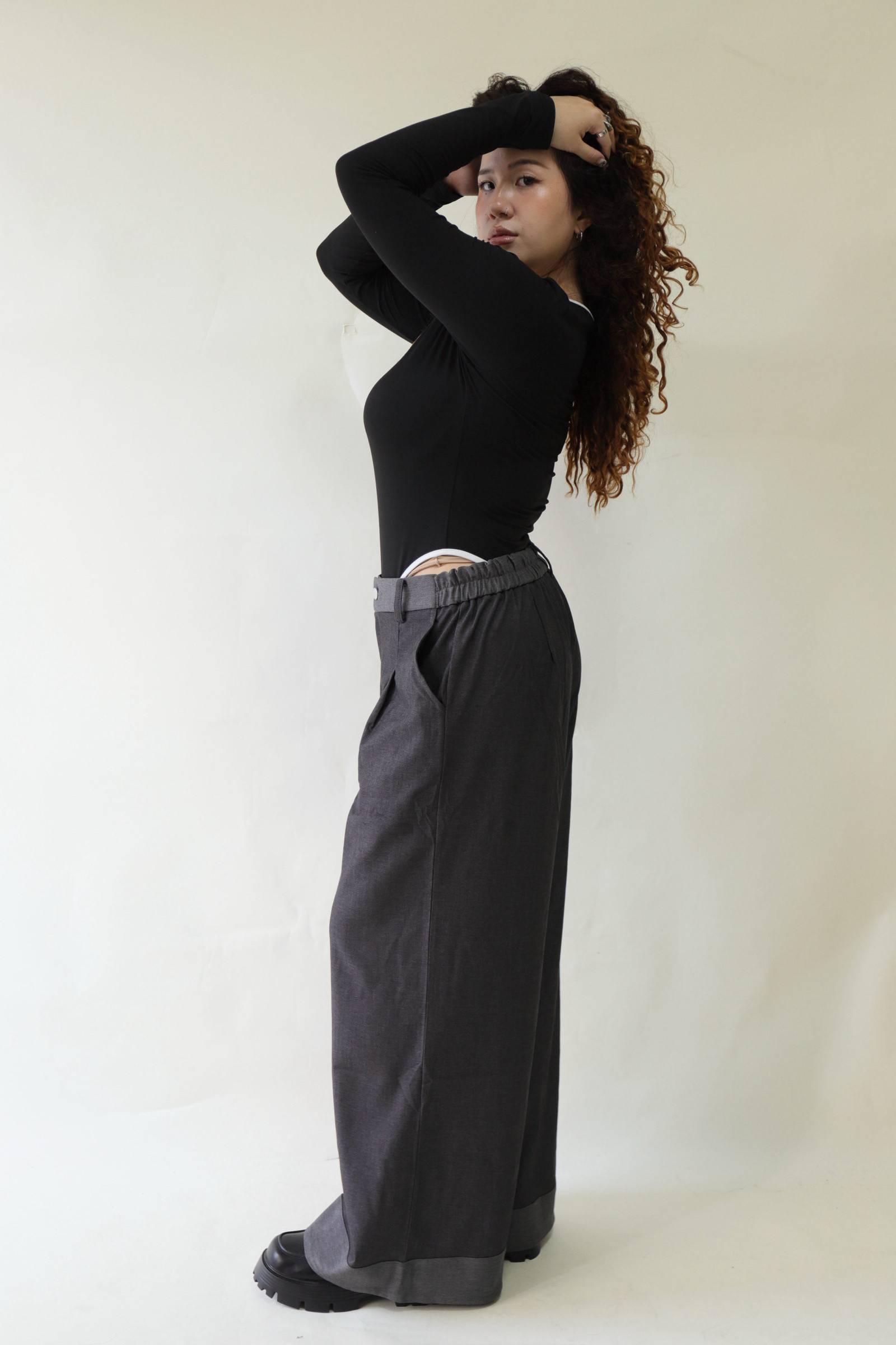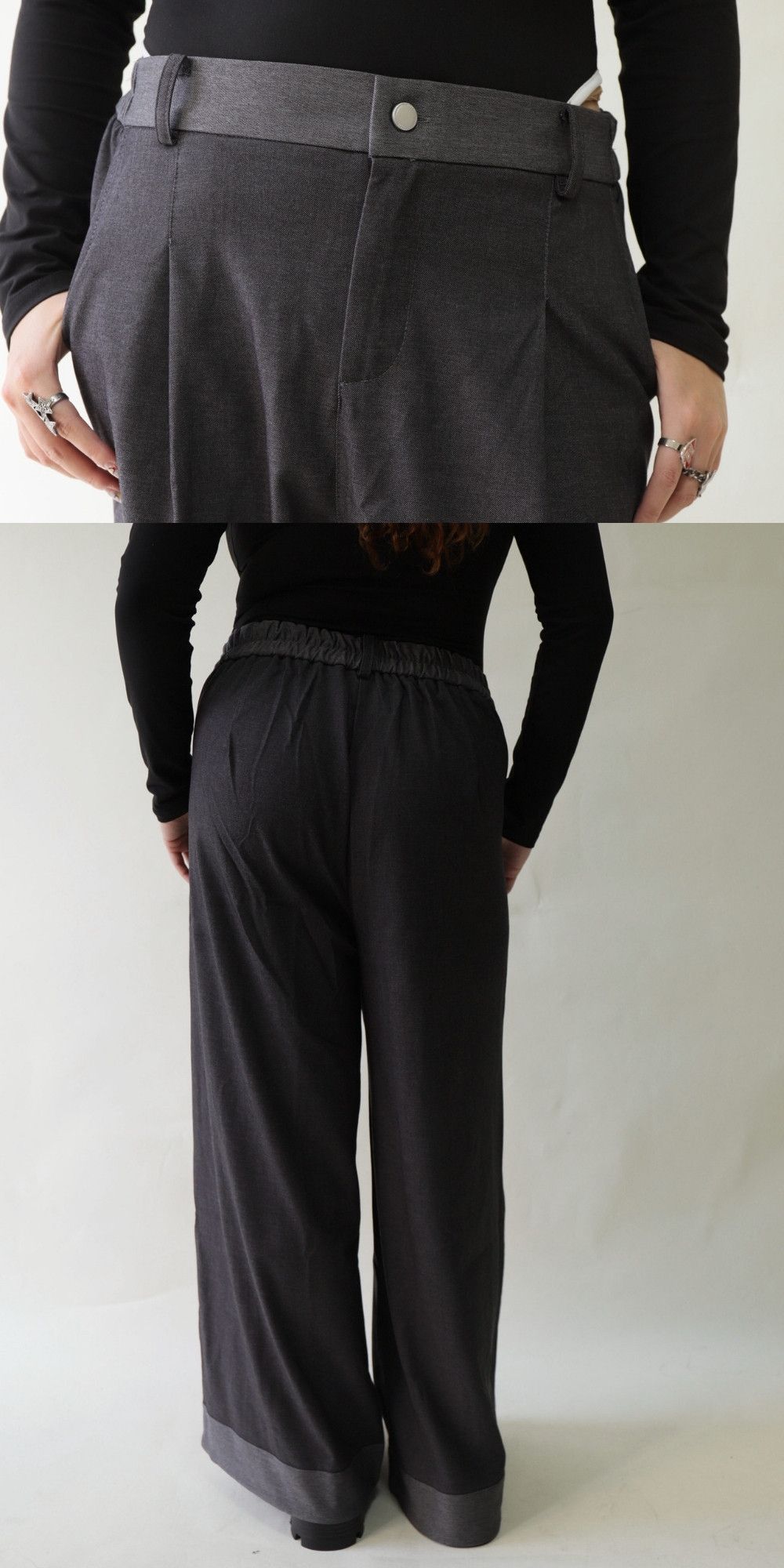 【EASE】拼接撞色高級感打摺寬褲,LEILASHAW 你的美不該被數字綁架