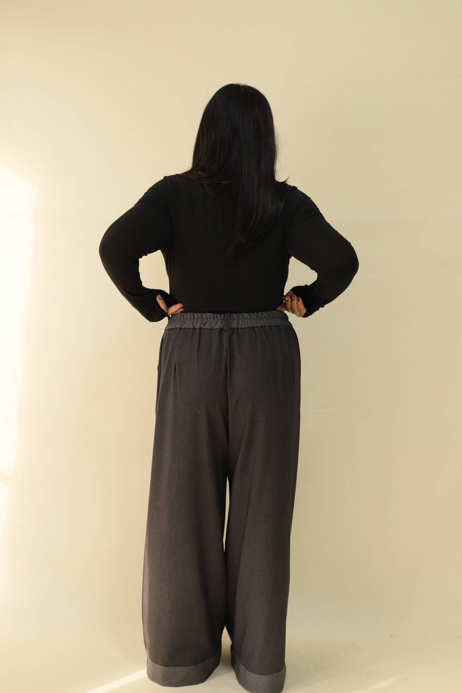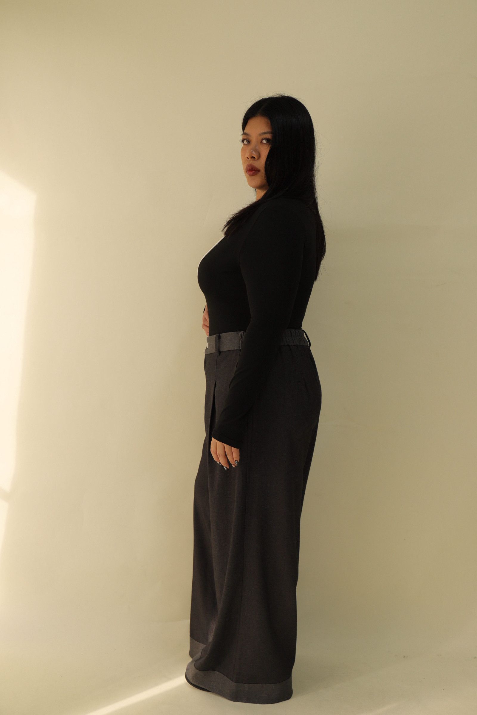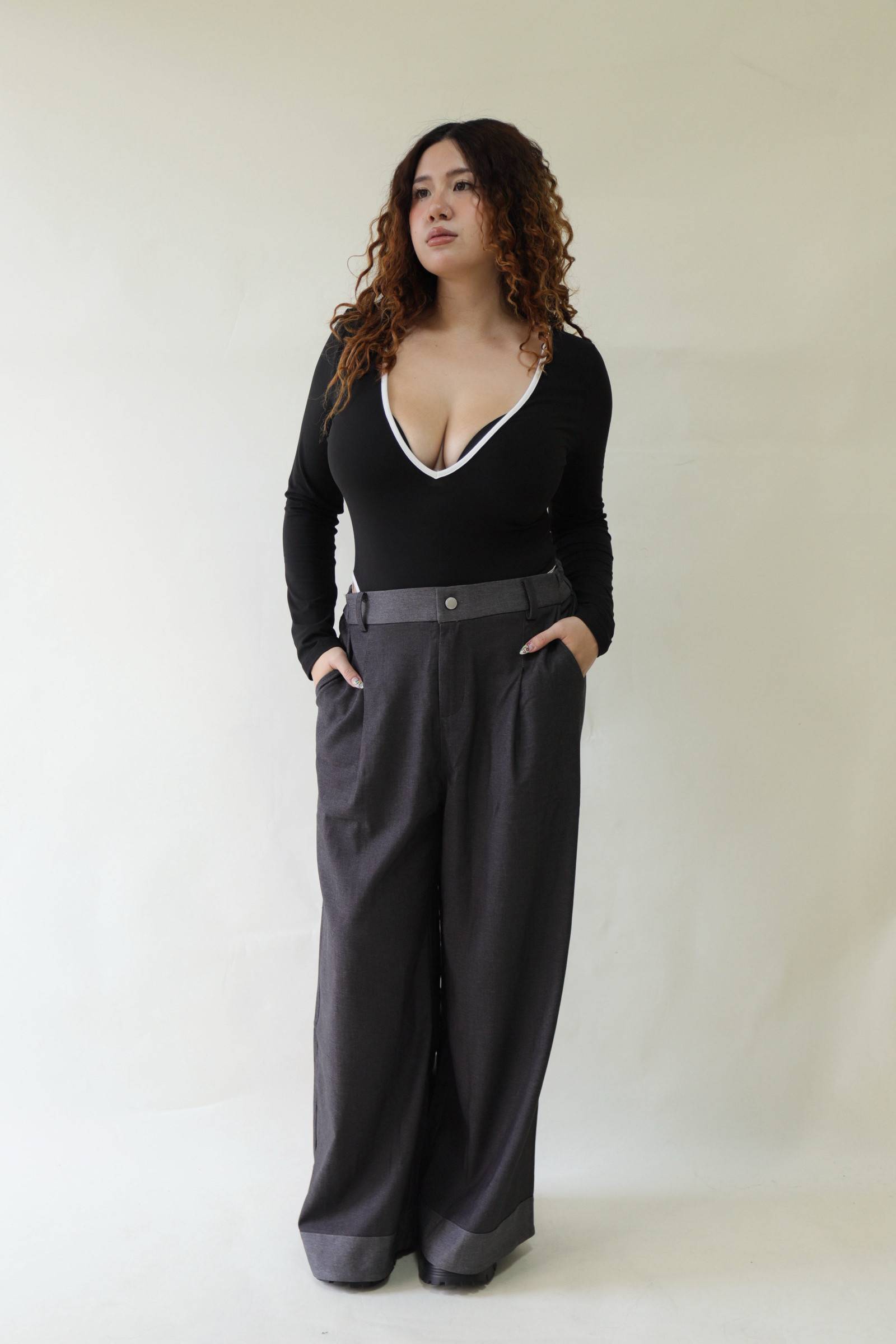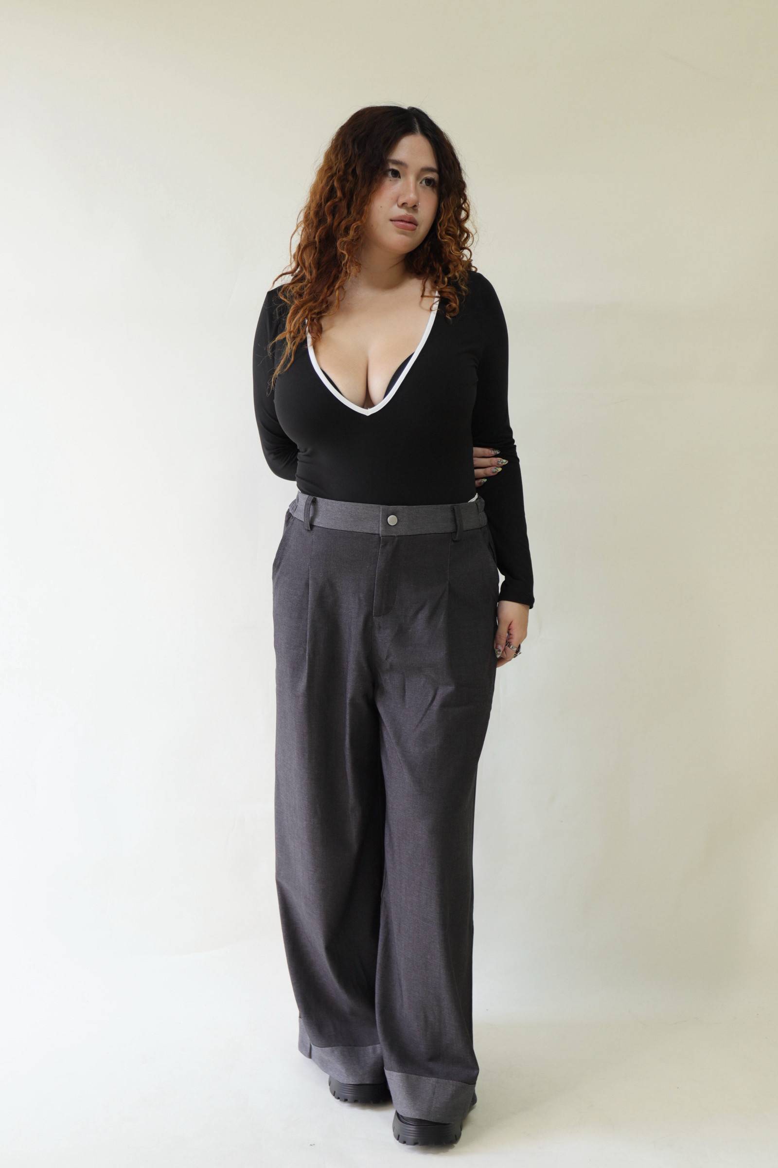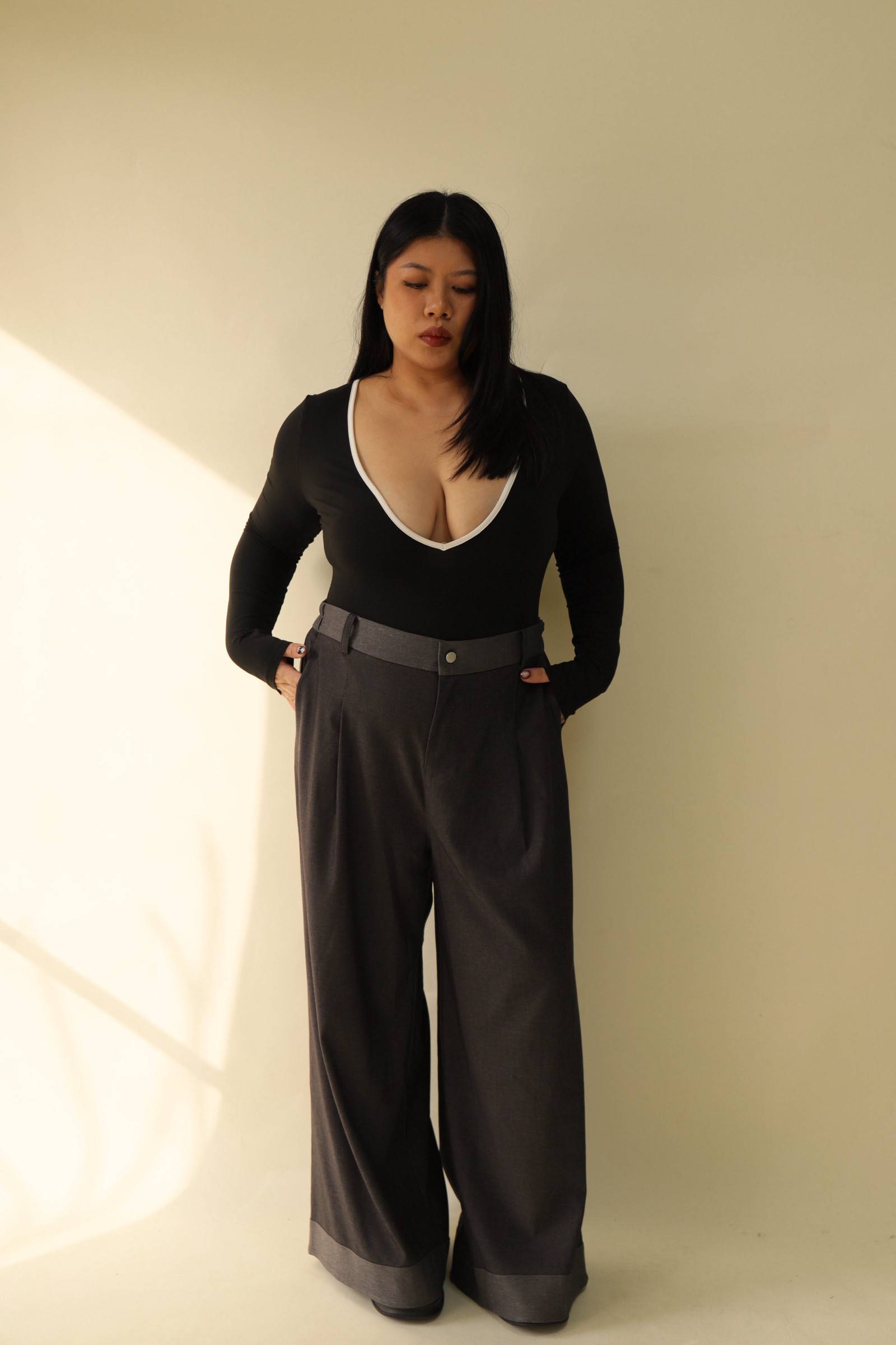 【EASE】拼接撞色高級感打摺寬褲,LEILASHAW 你的美不該被數字綁架