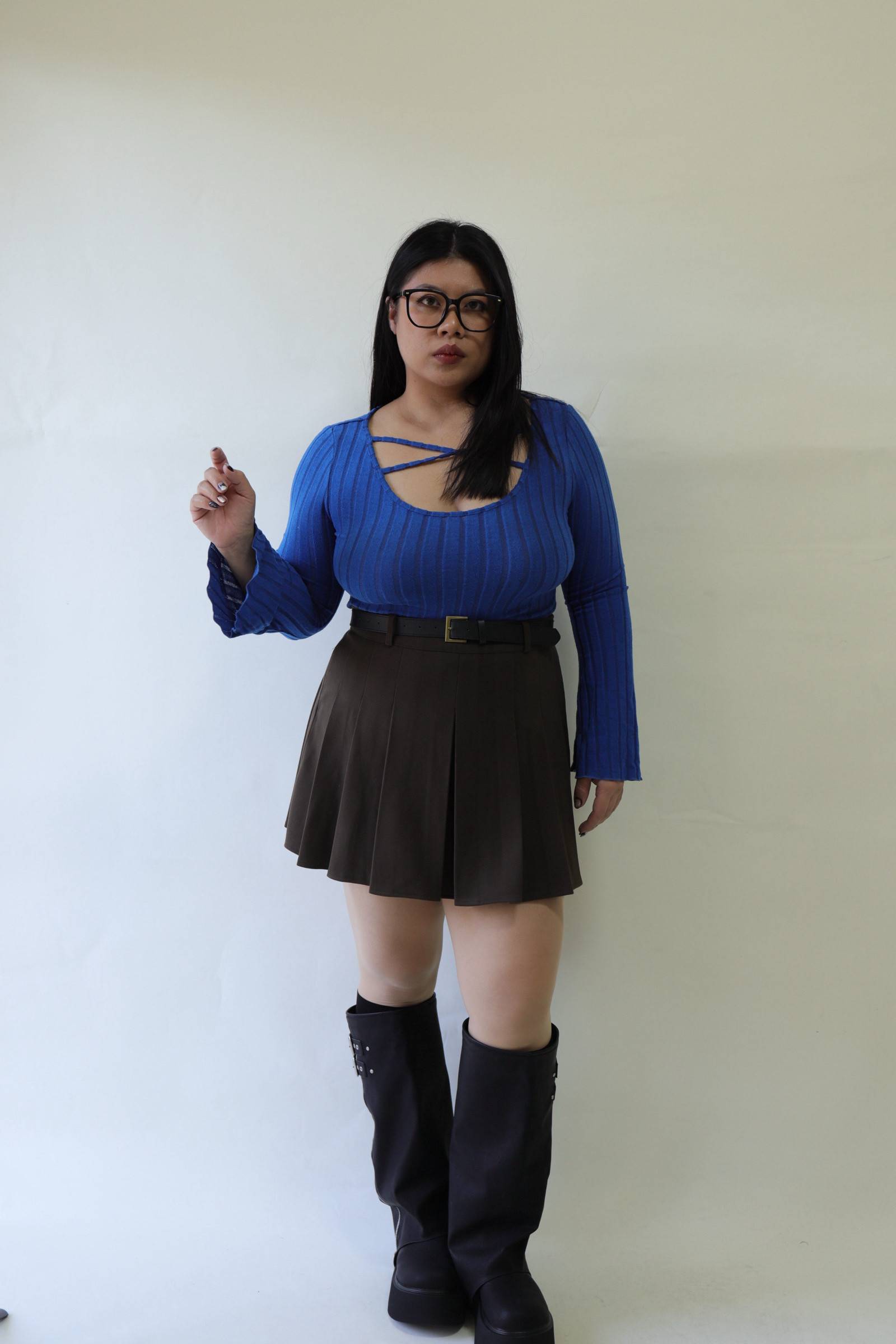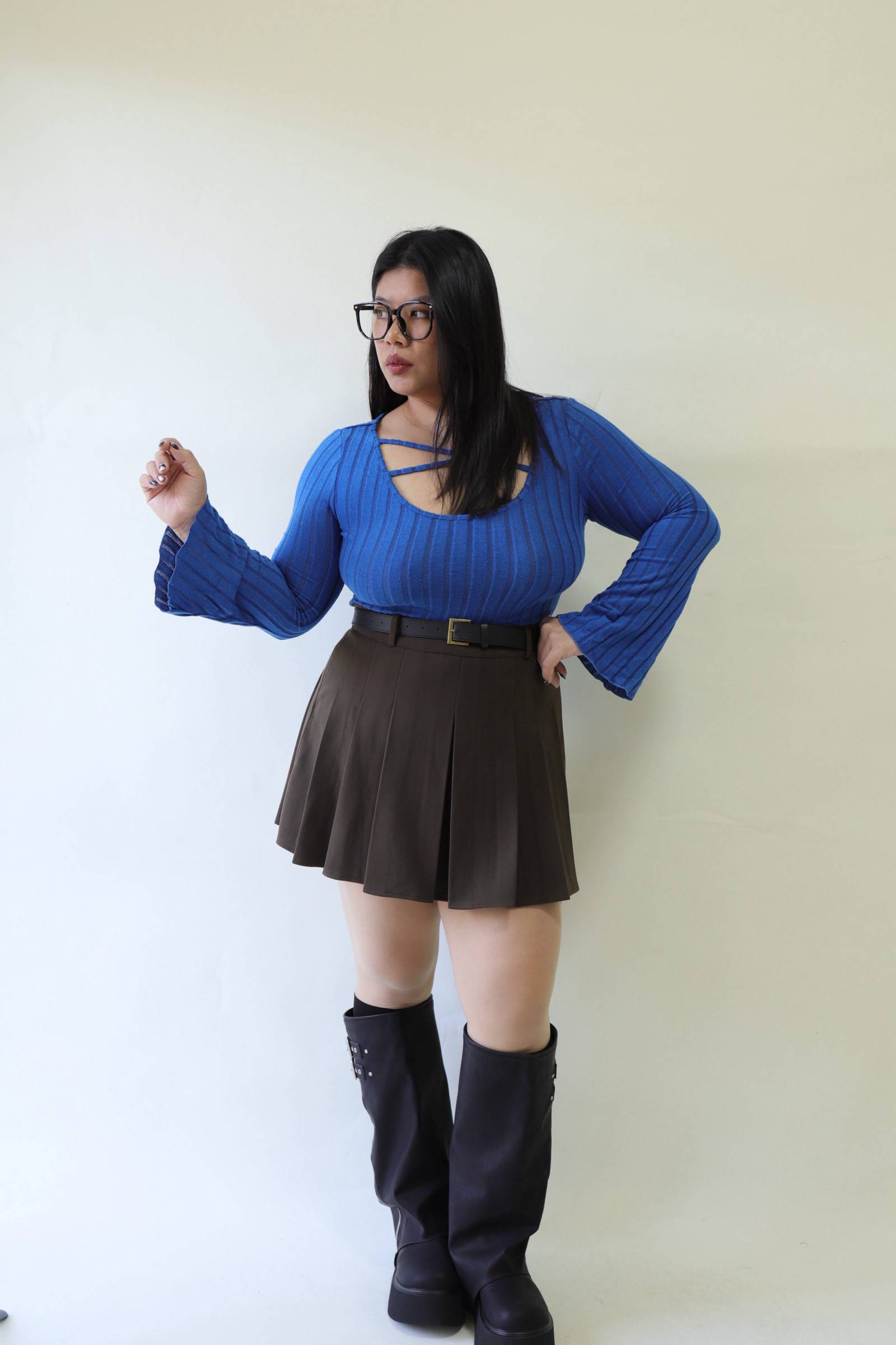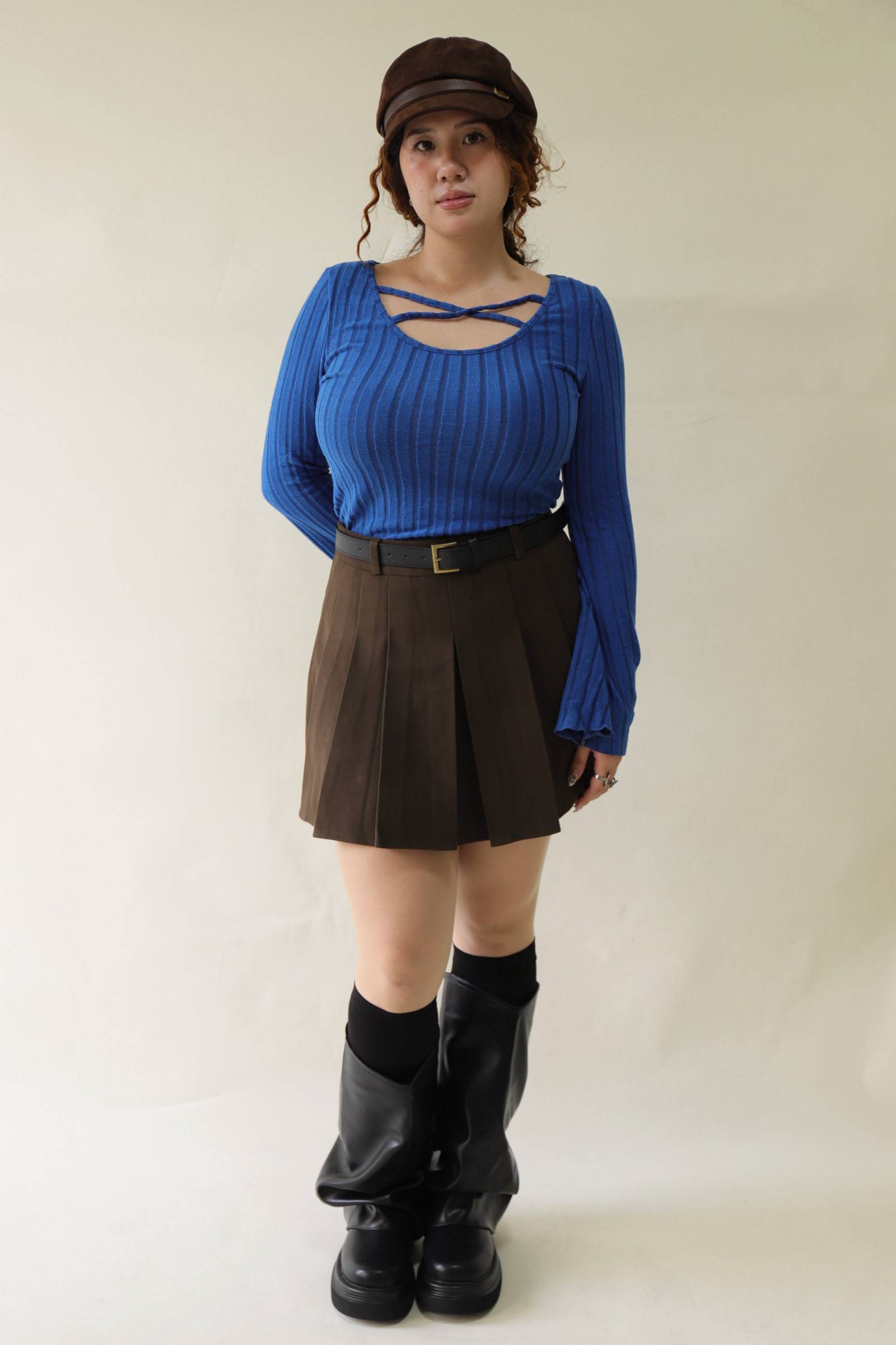 不顯胖毛呢百摺短裙(附皮帶)-咖,LEILASHAW 你的美不該被數字綁架