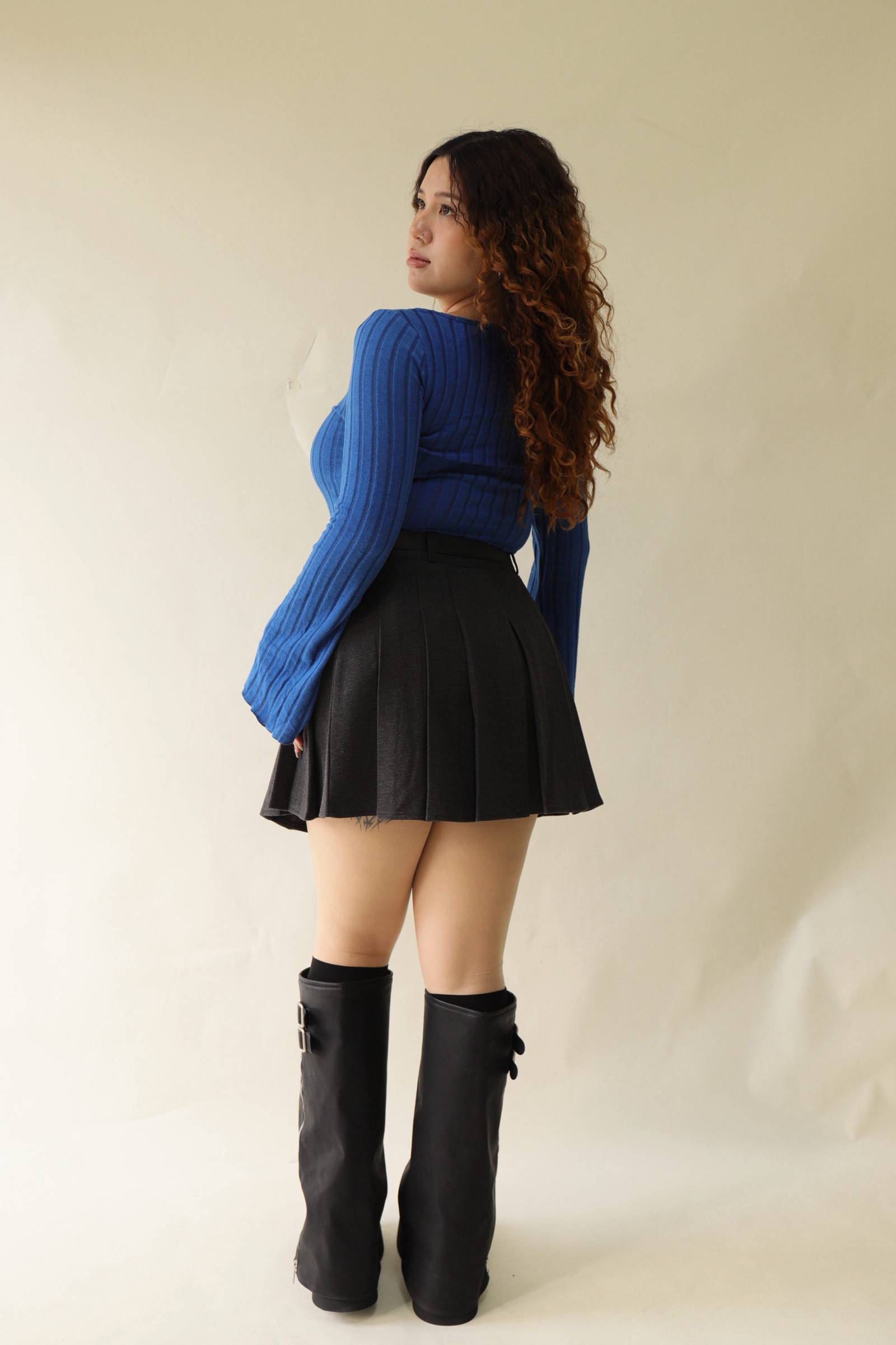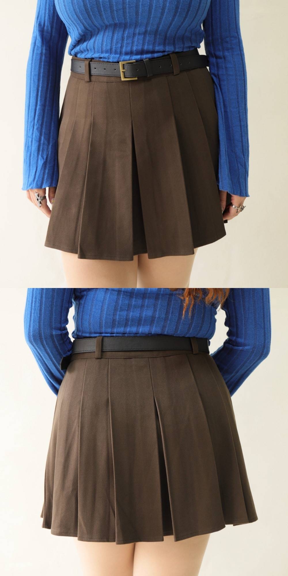 不顯胖毛呢百摺短裙(附皮帶)-灰