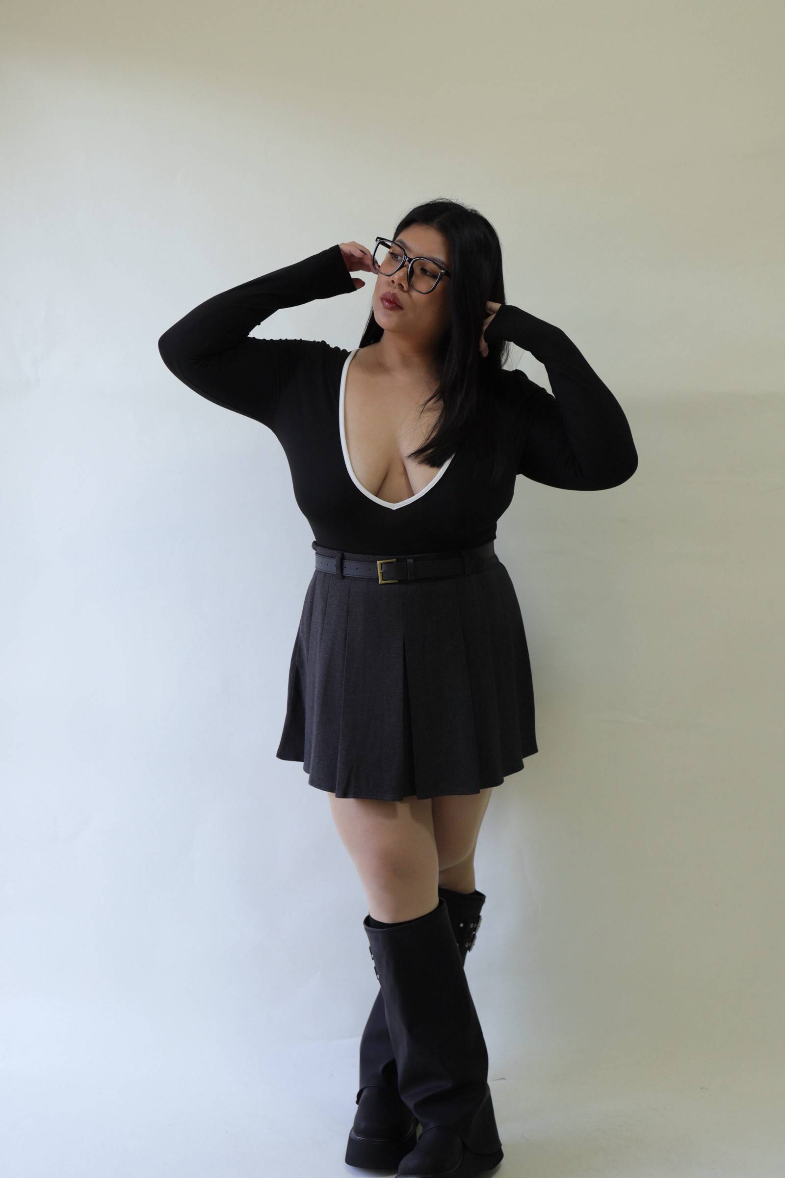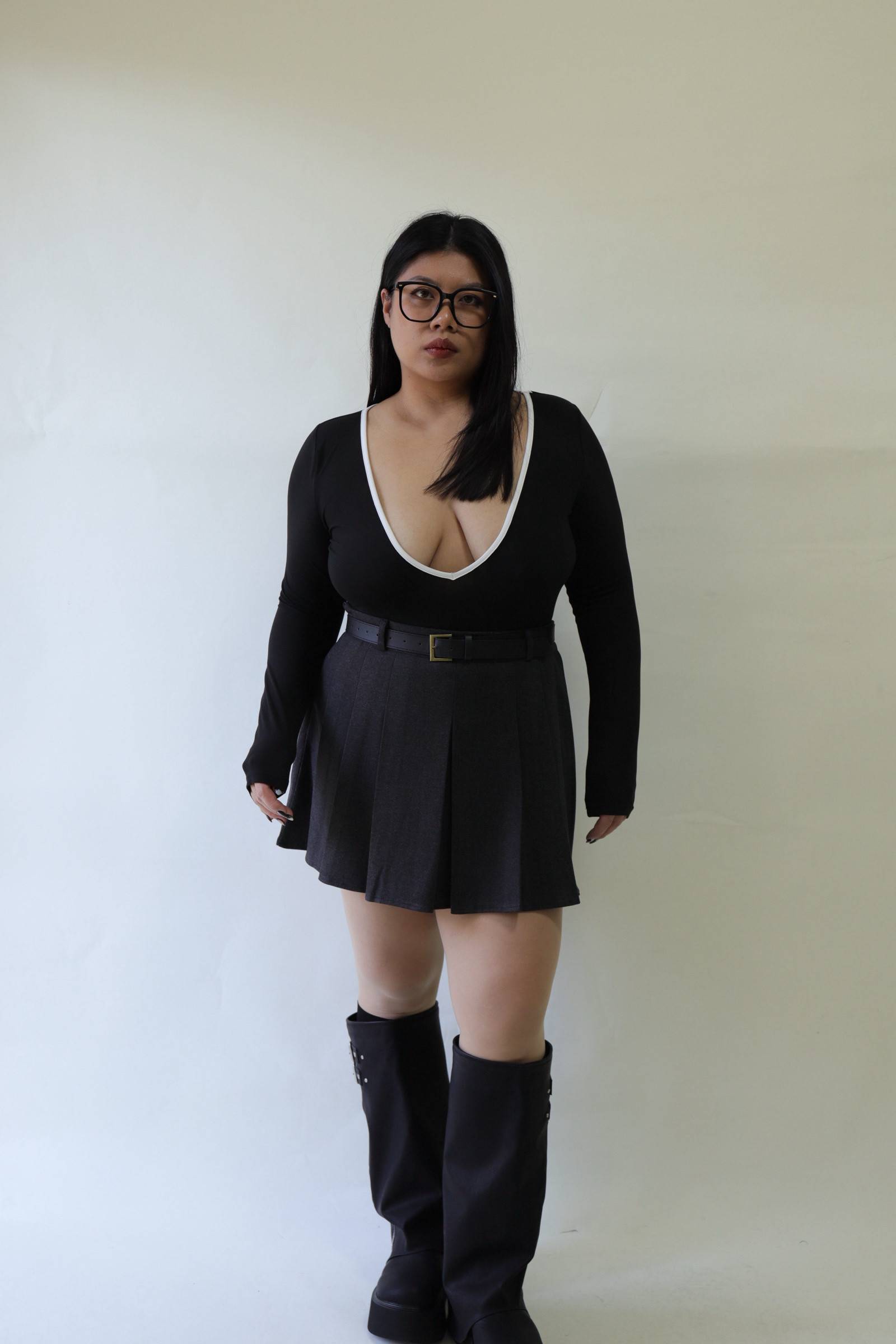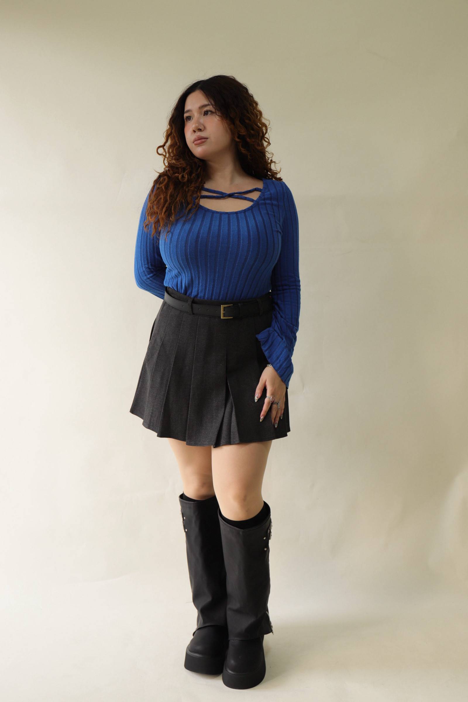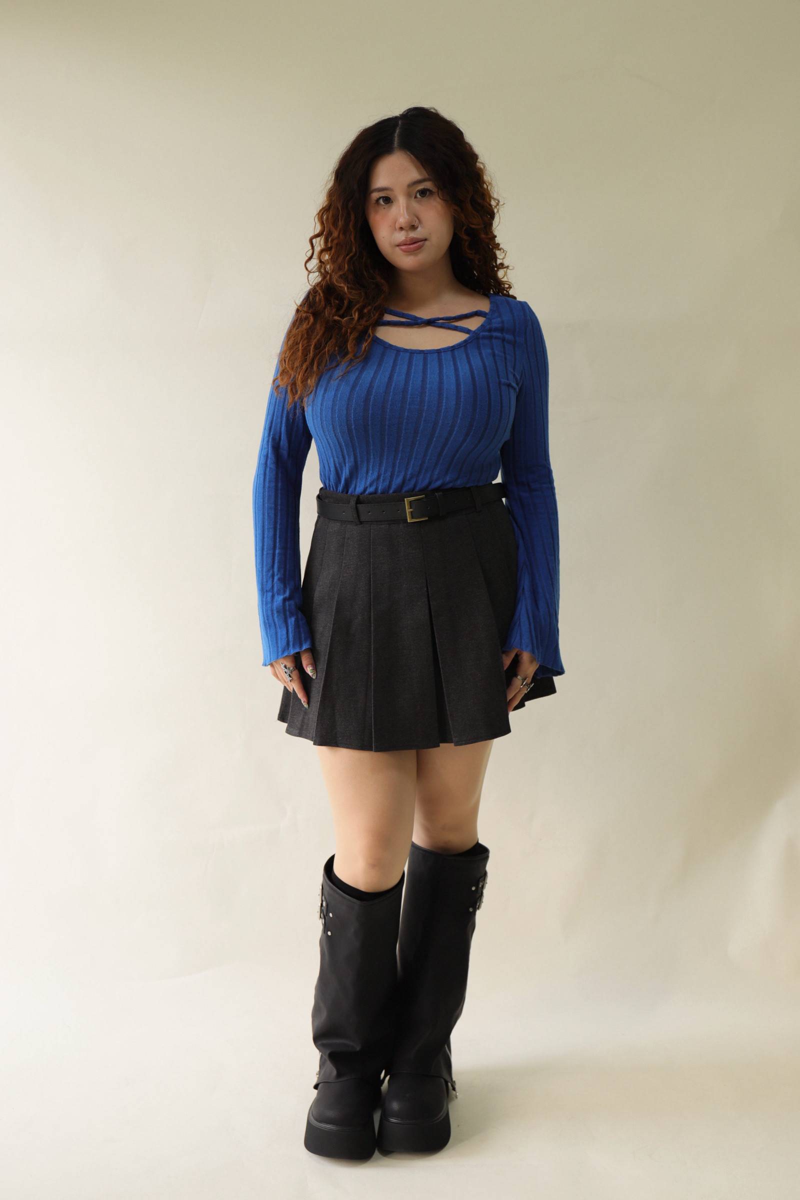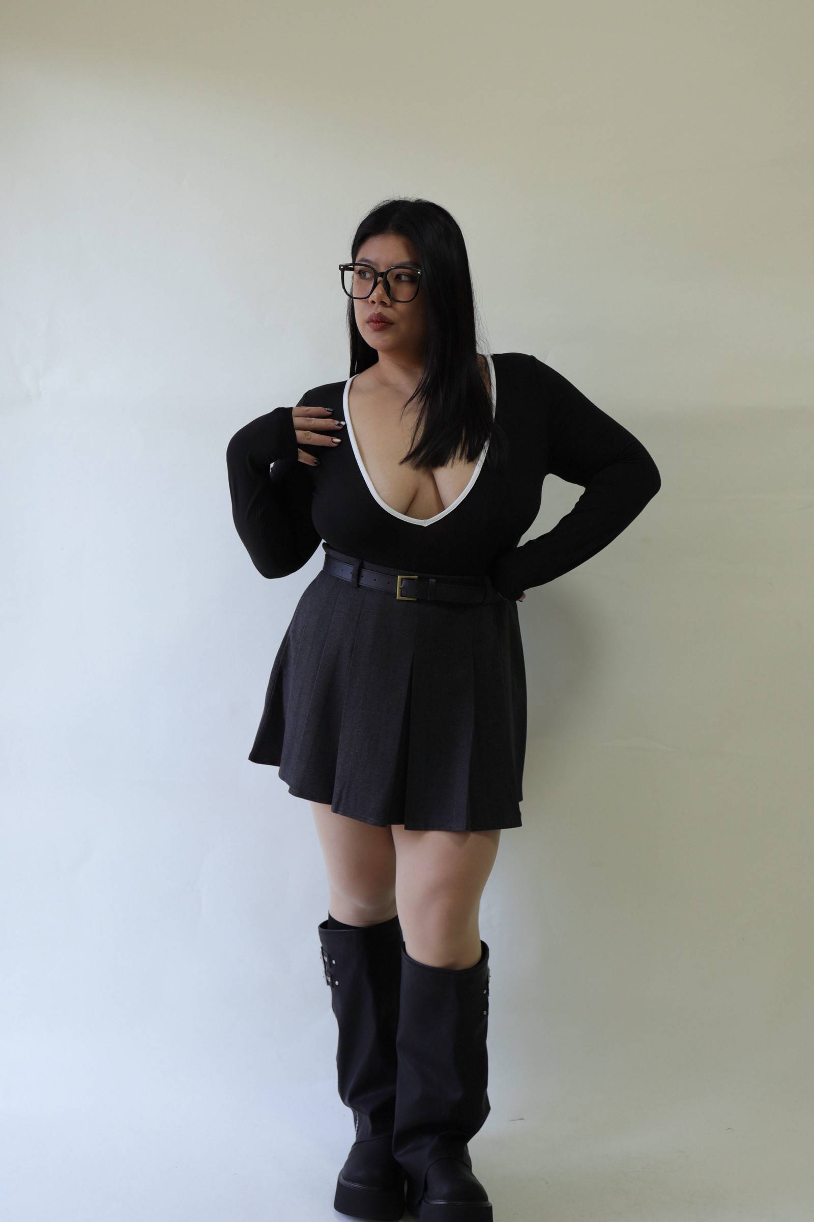 不顯胖毛呢百摺短裙(附皮帶)-灰,LEILASHAW 你的美不該被數字綁架