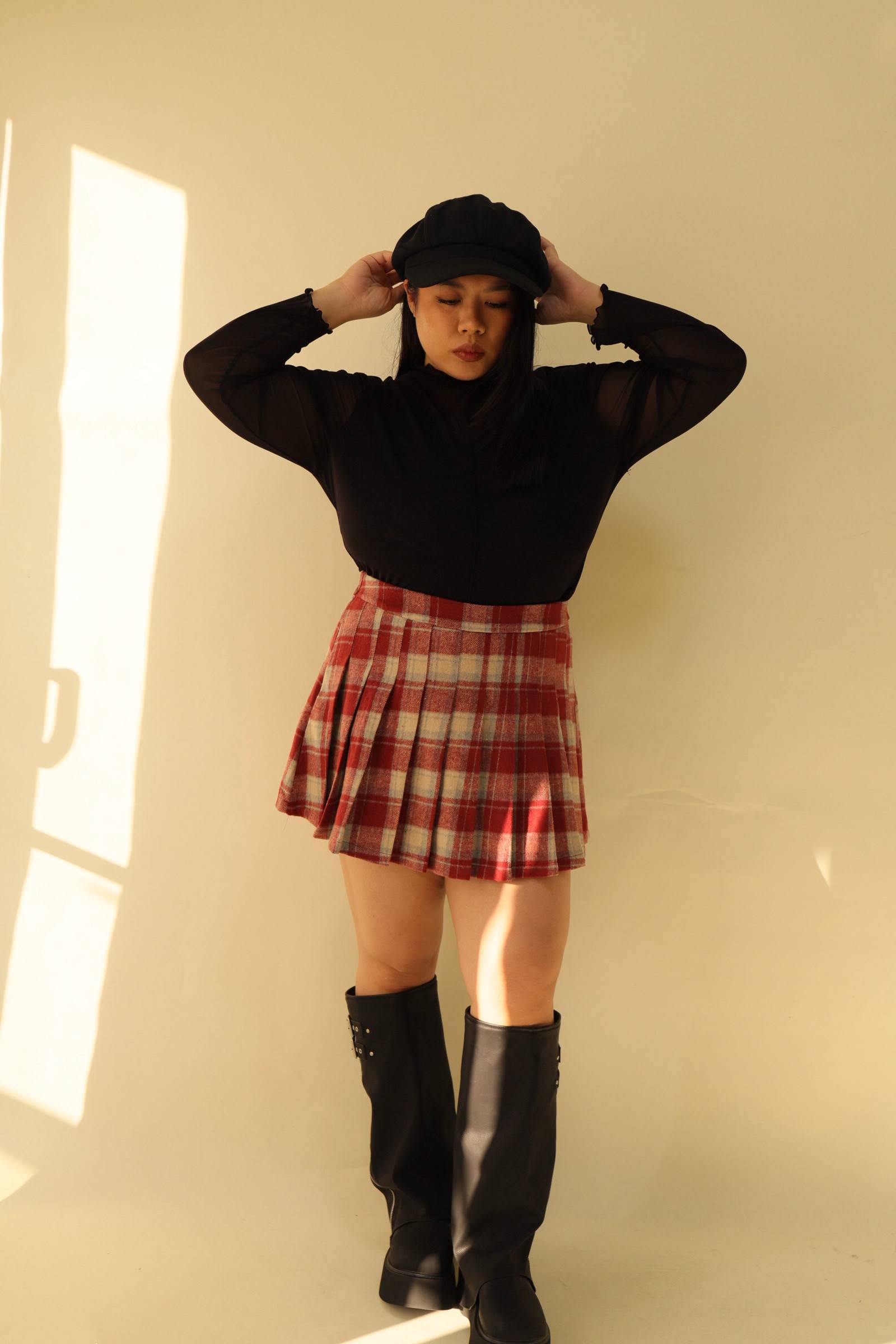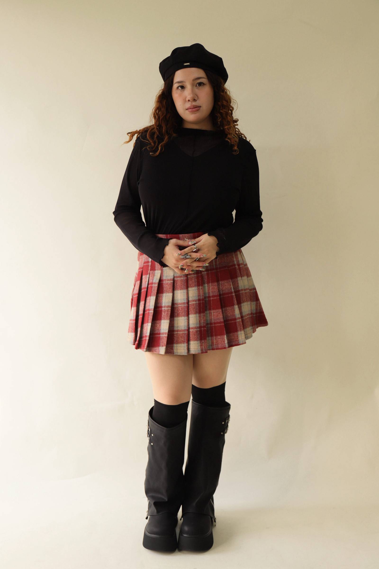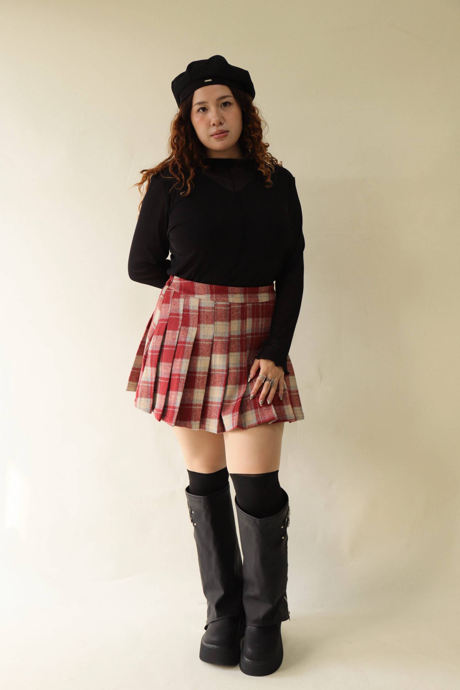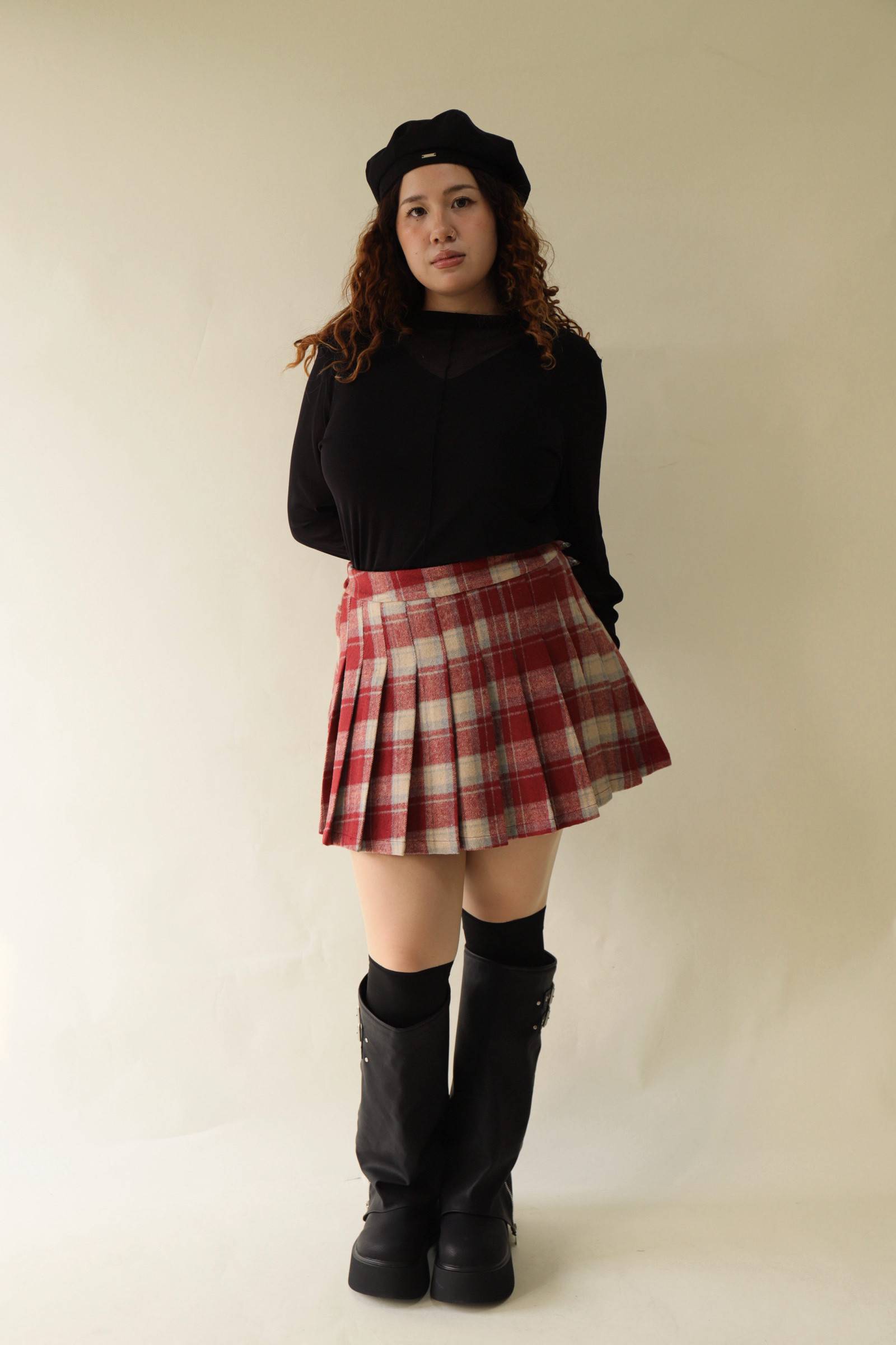 格紋百摺短裙-紅格,LEILASHAW 你的美不該被數字綁架