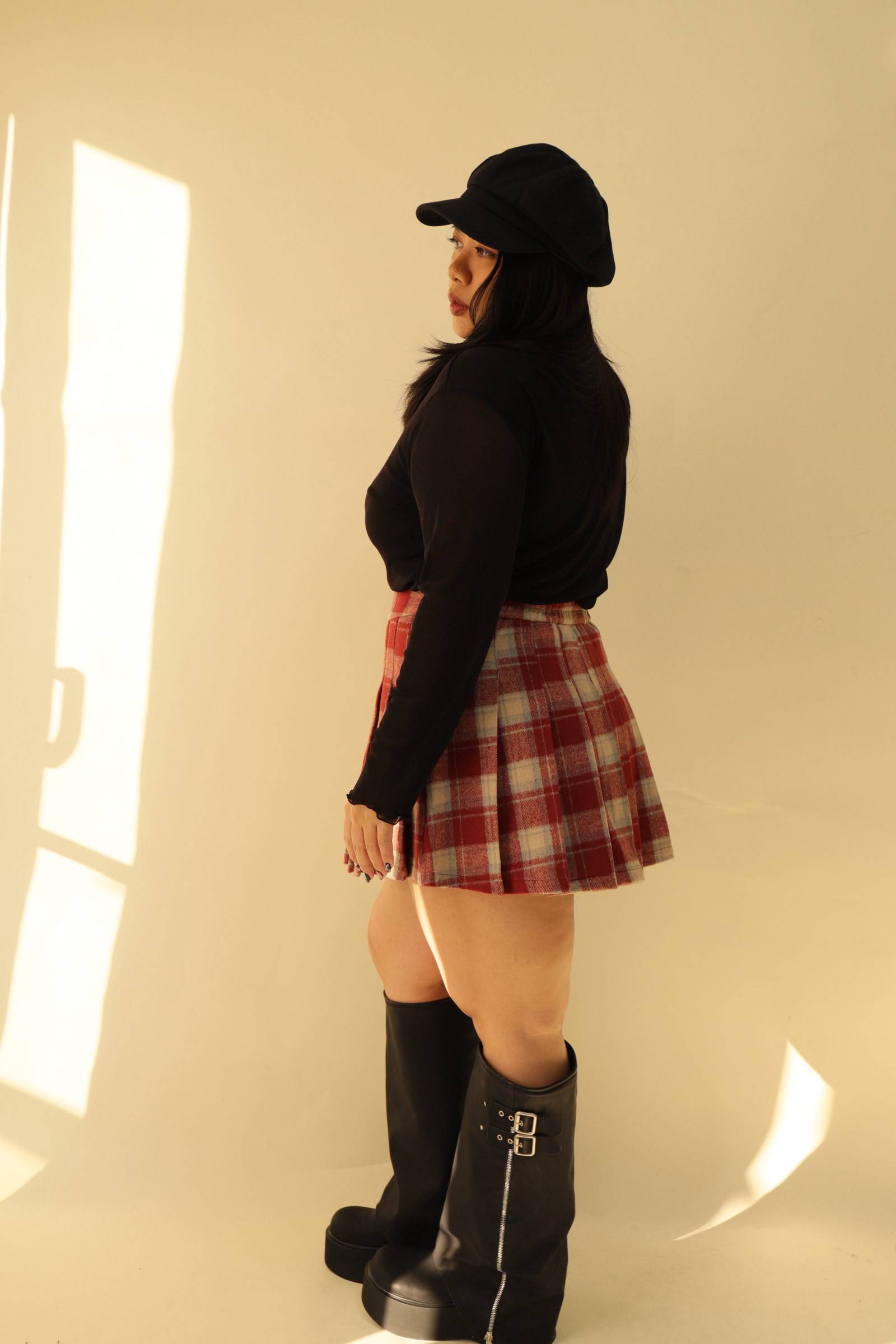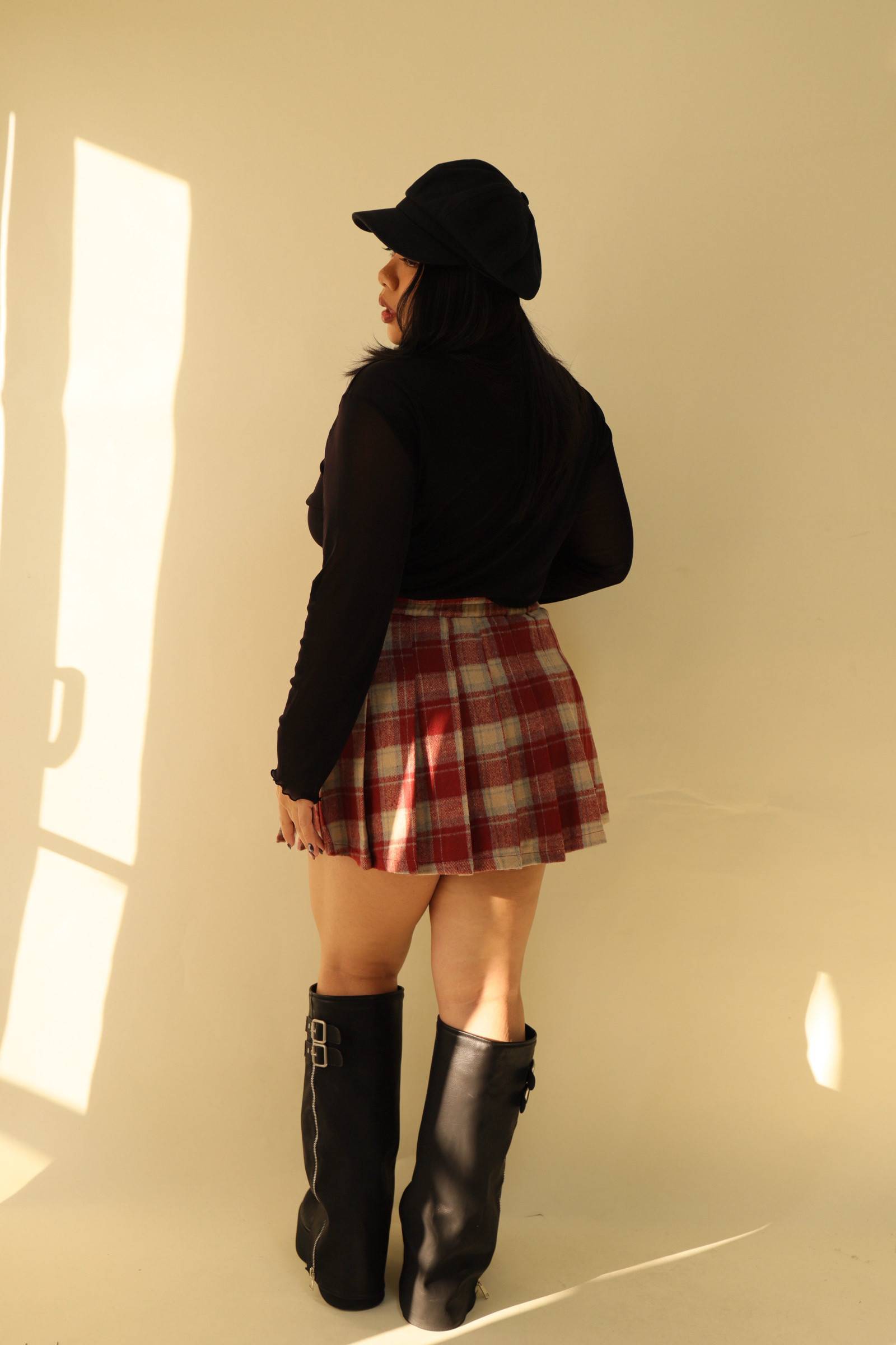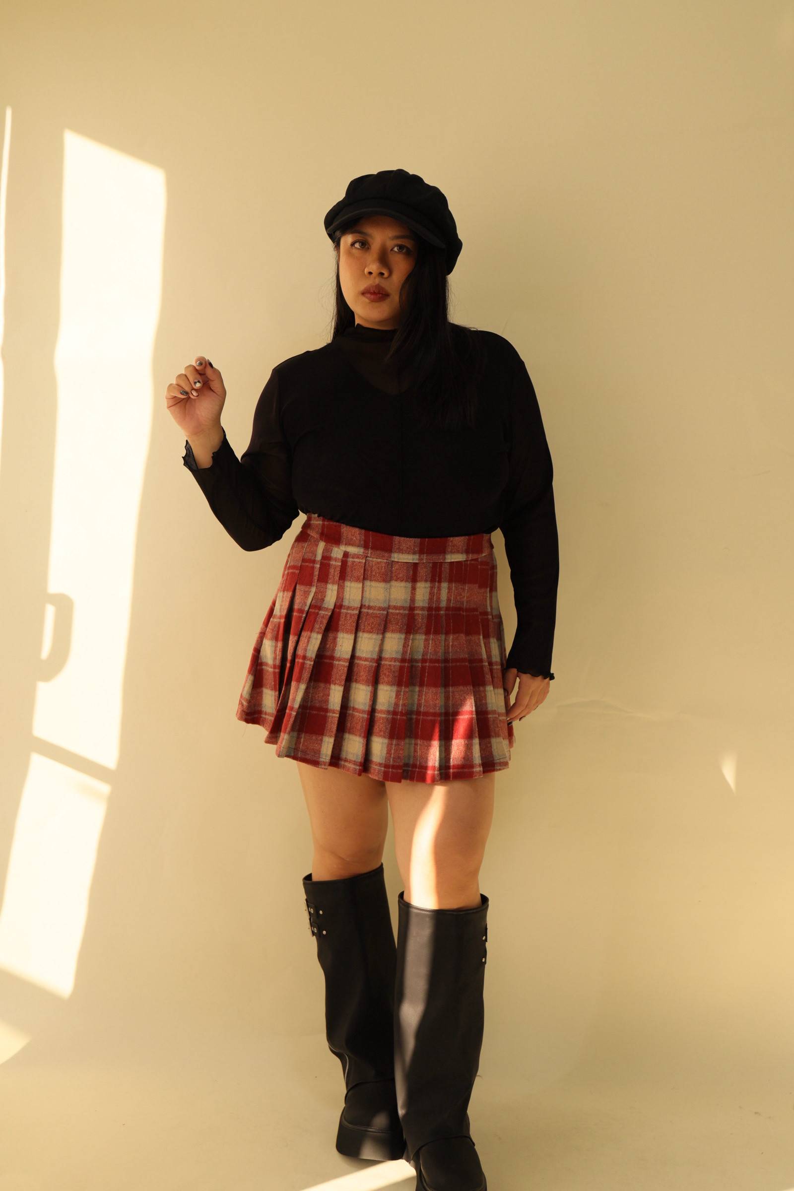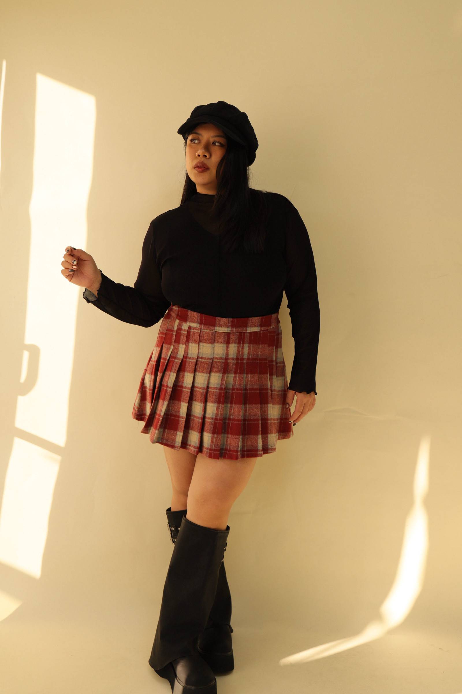 格紋百摺短裙-紅格,LEILASHAW 你的美不該被數字綁架