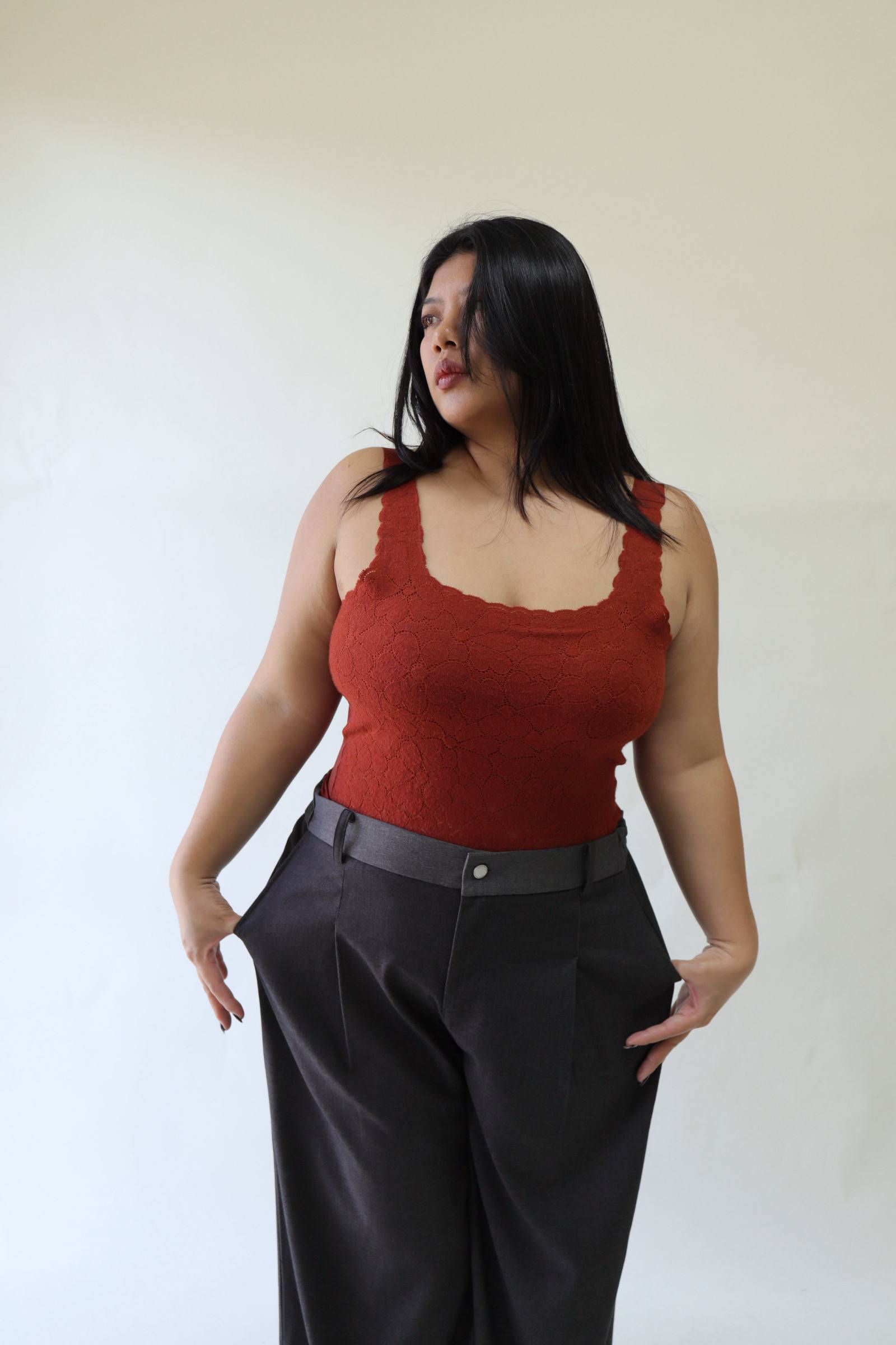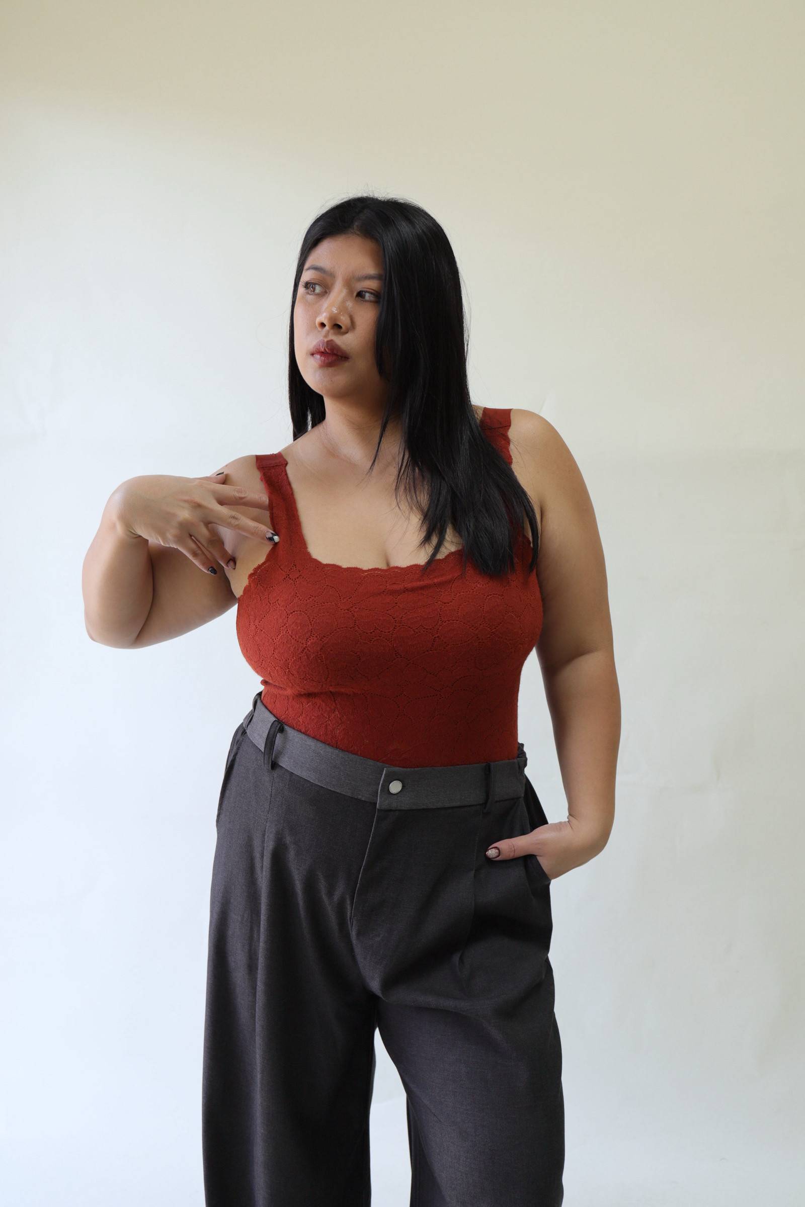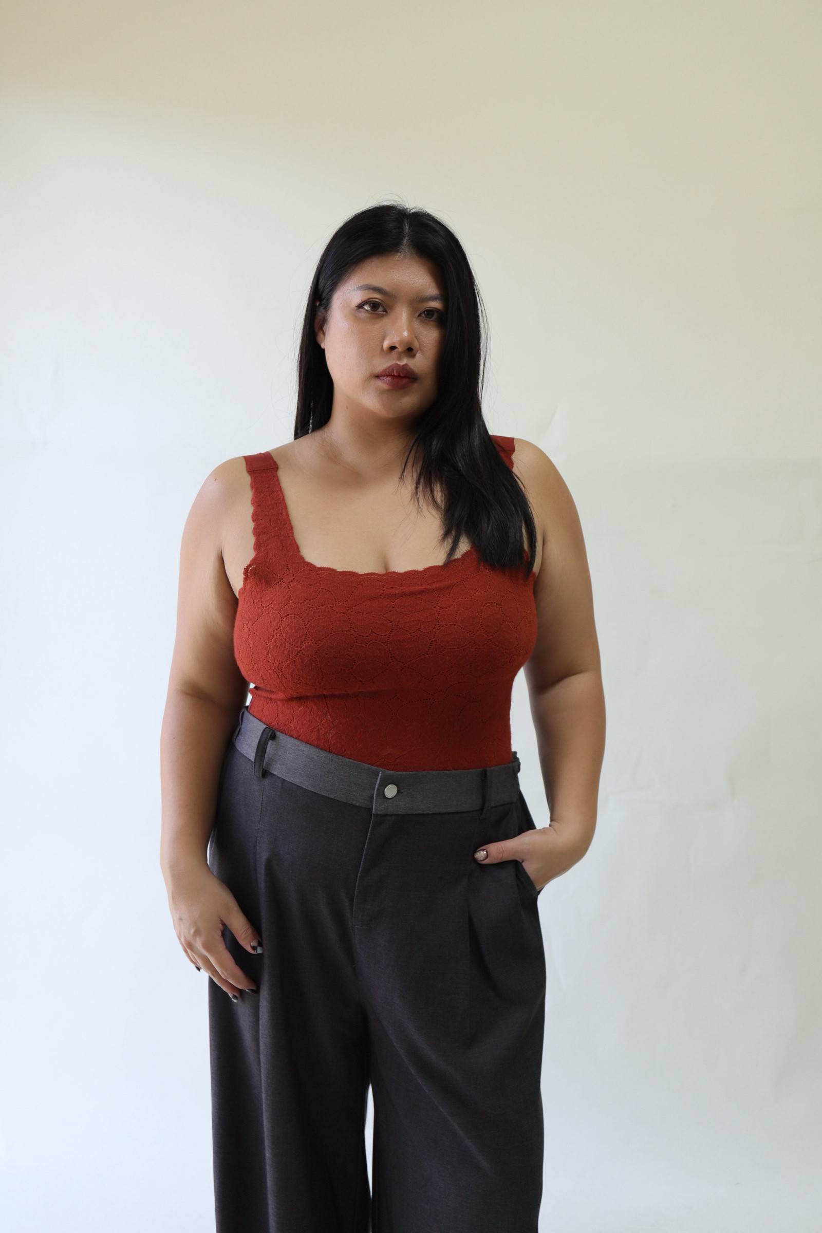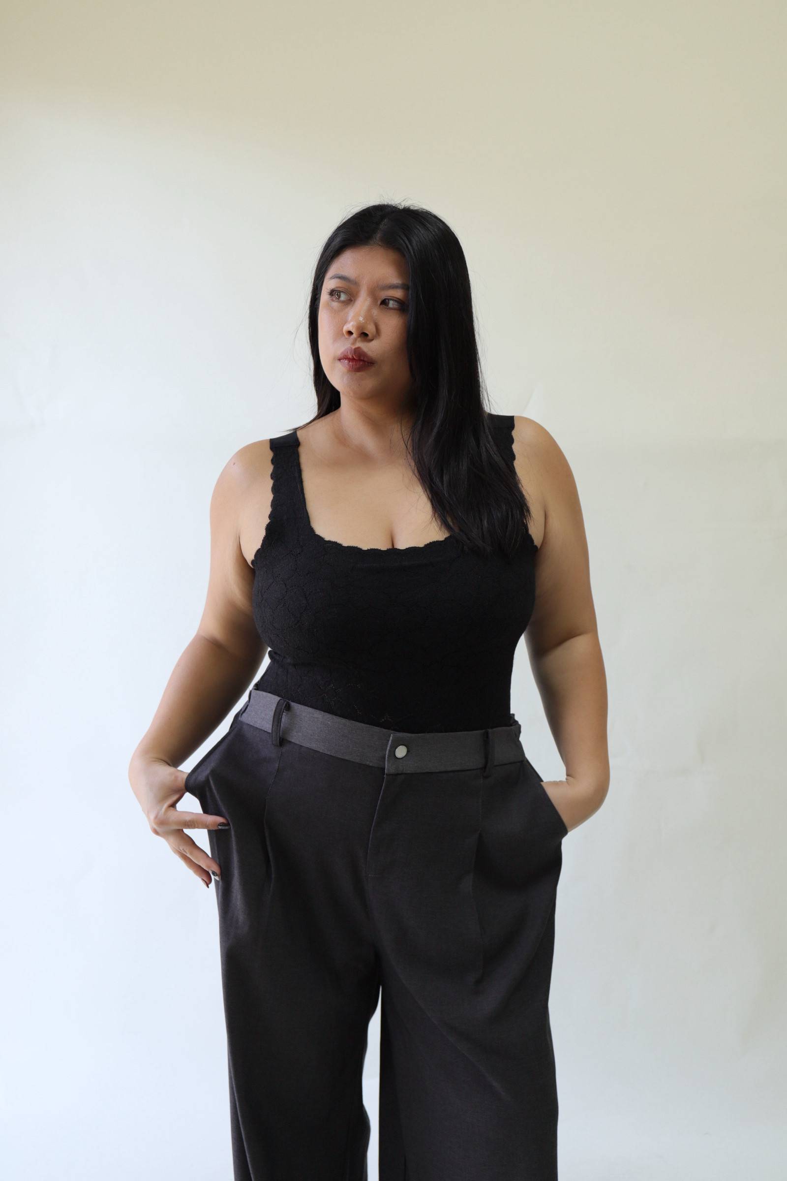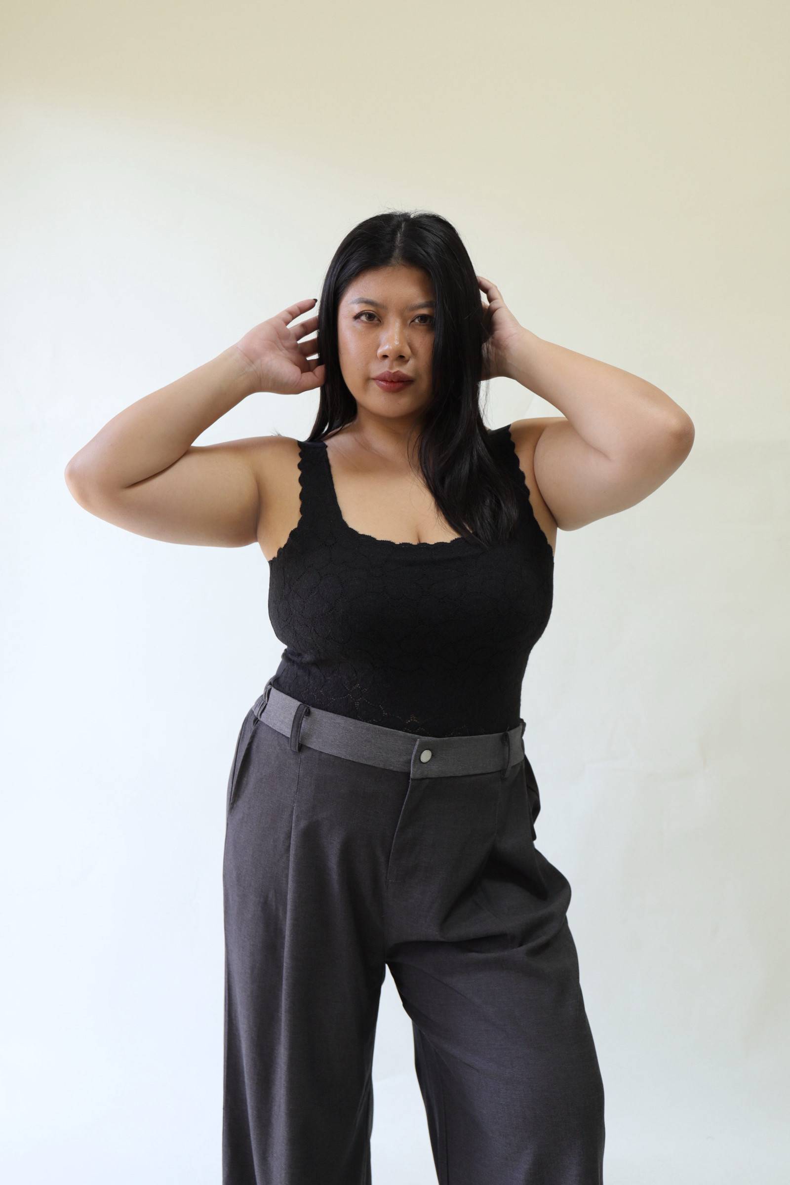 寬肩磨毛波浪邊帶杯背心,LEILASHAW 你的美不該被數字綁架
