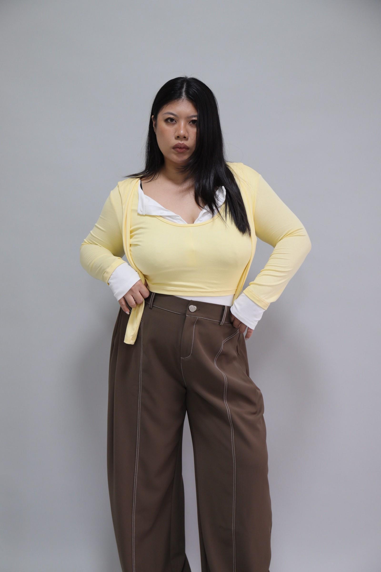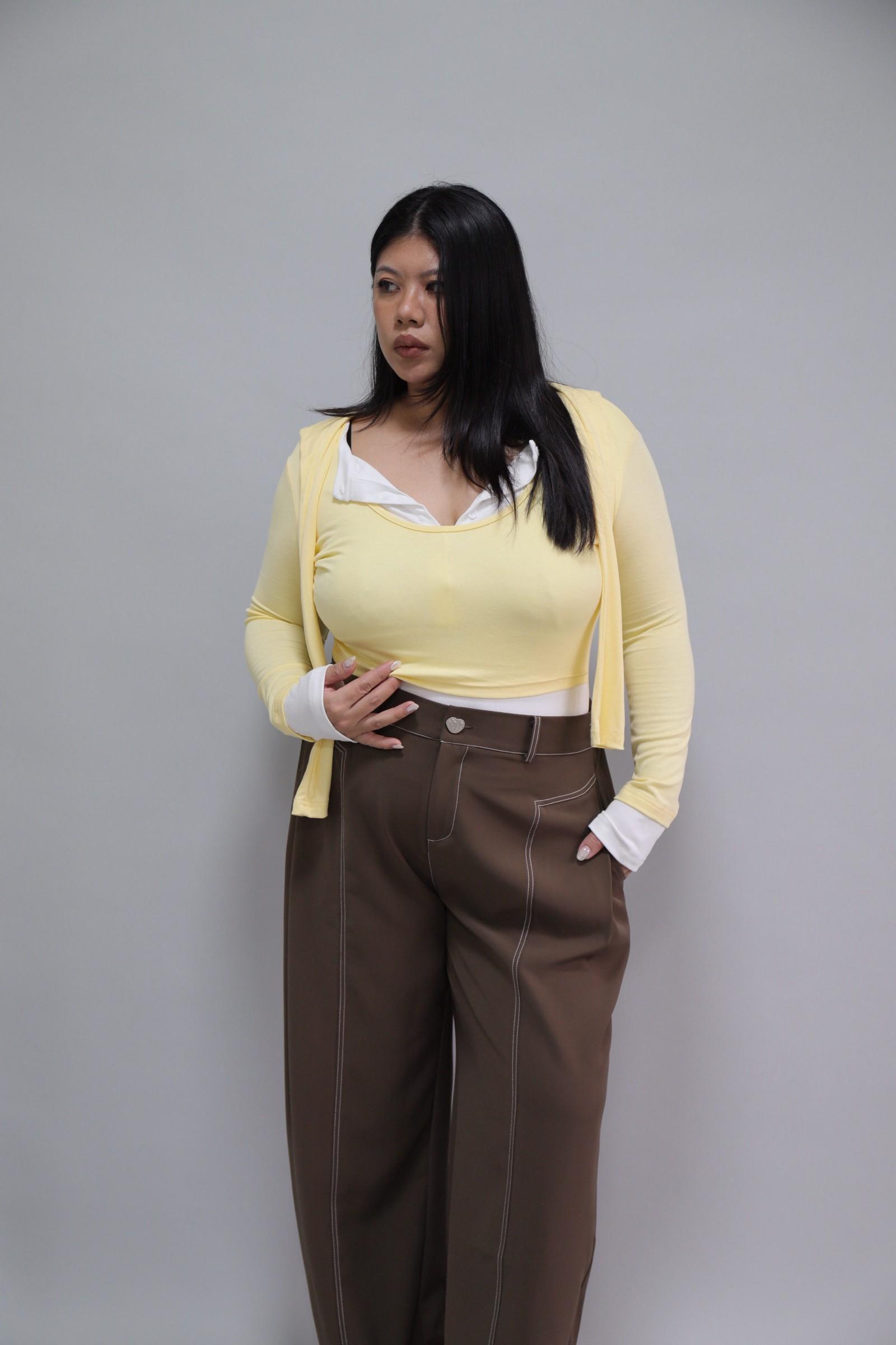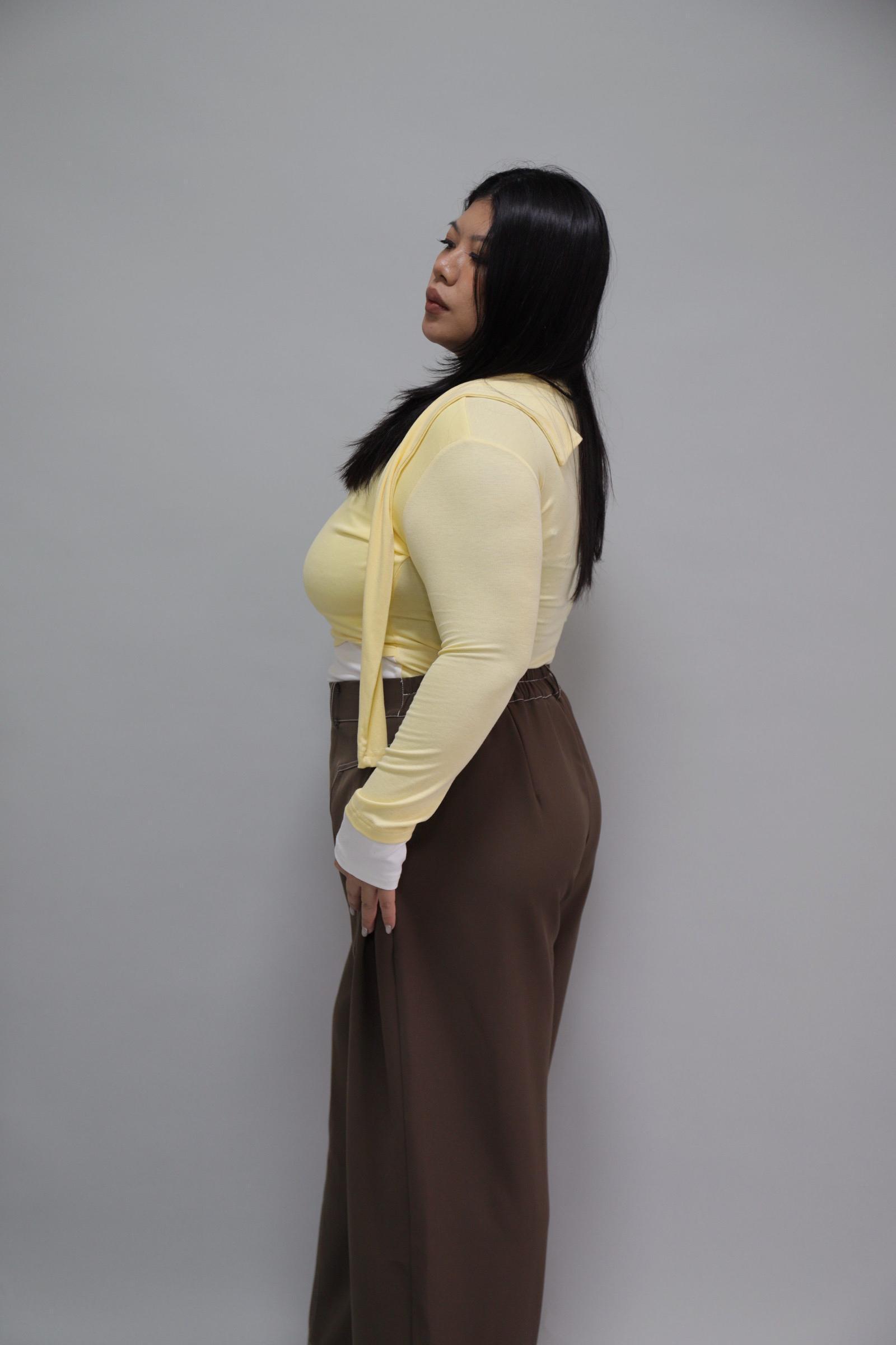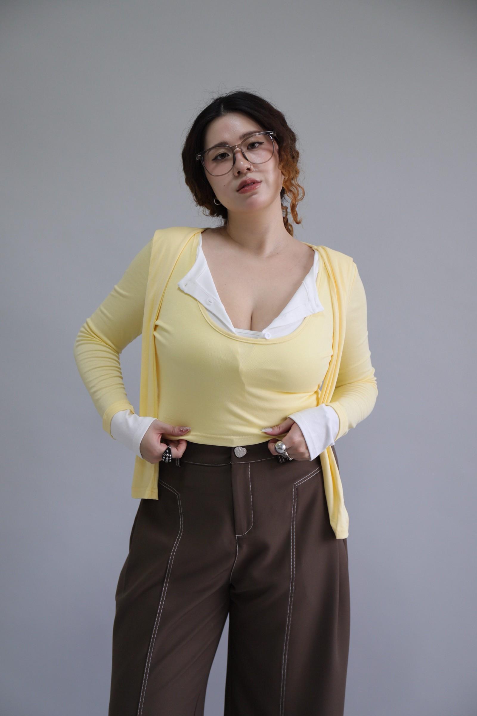 拼接撞色假兩件上衣-奶油黃,LEILASHAW 你的美不該被數字綁架