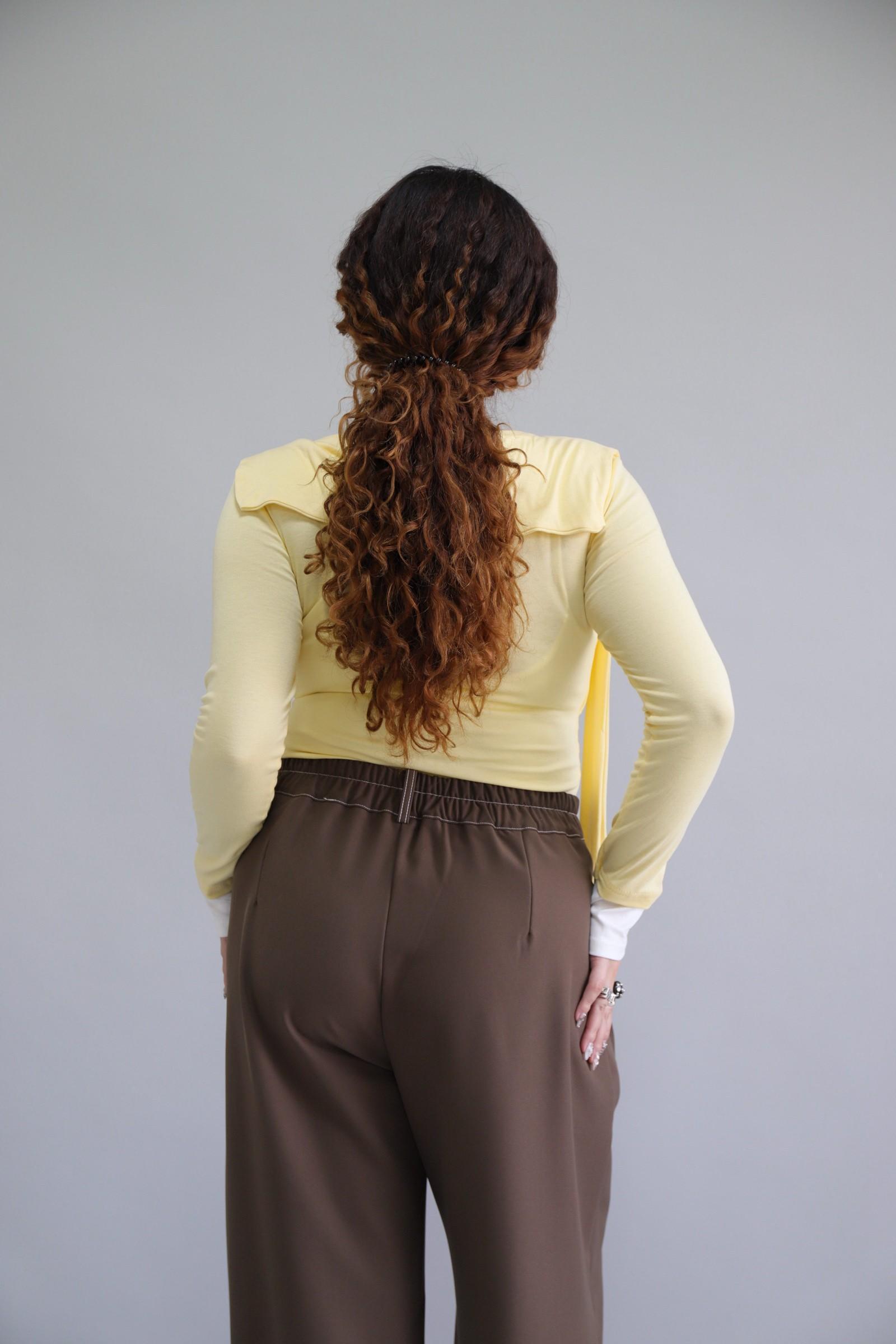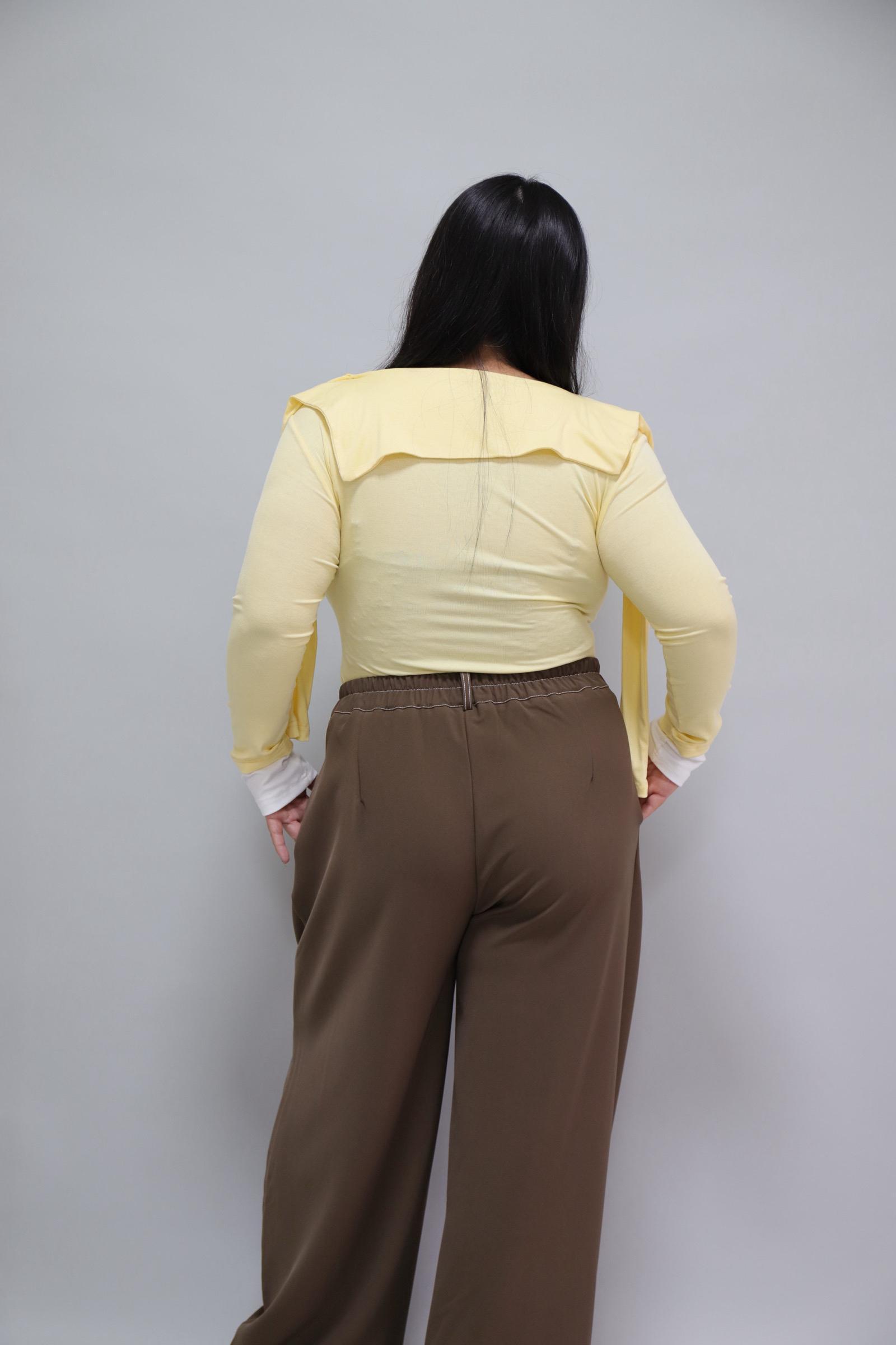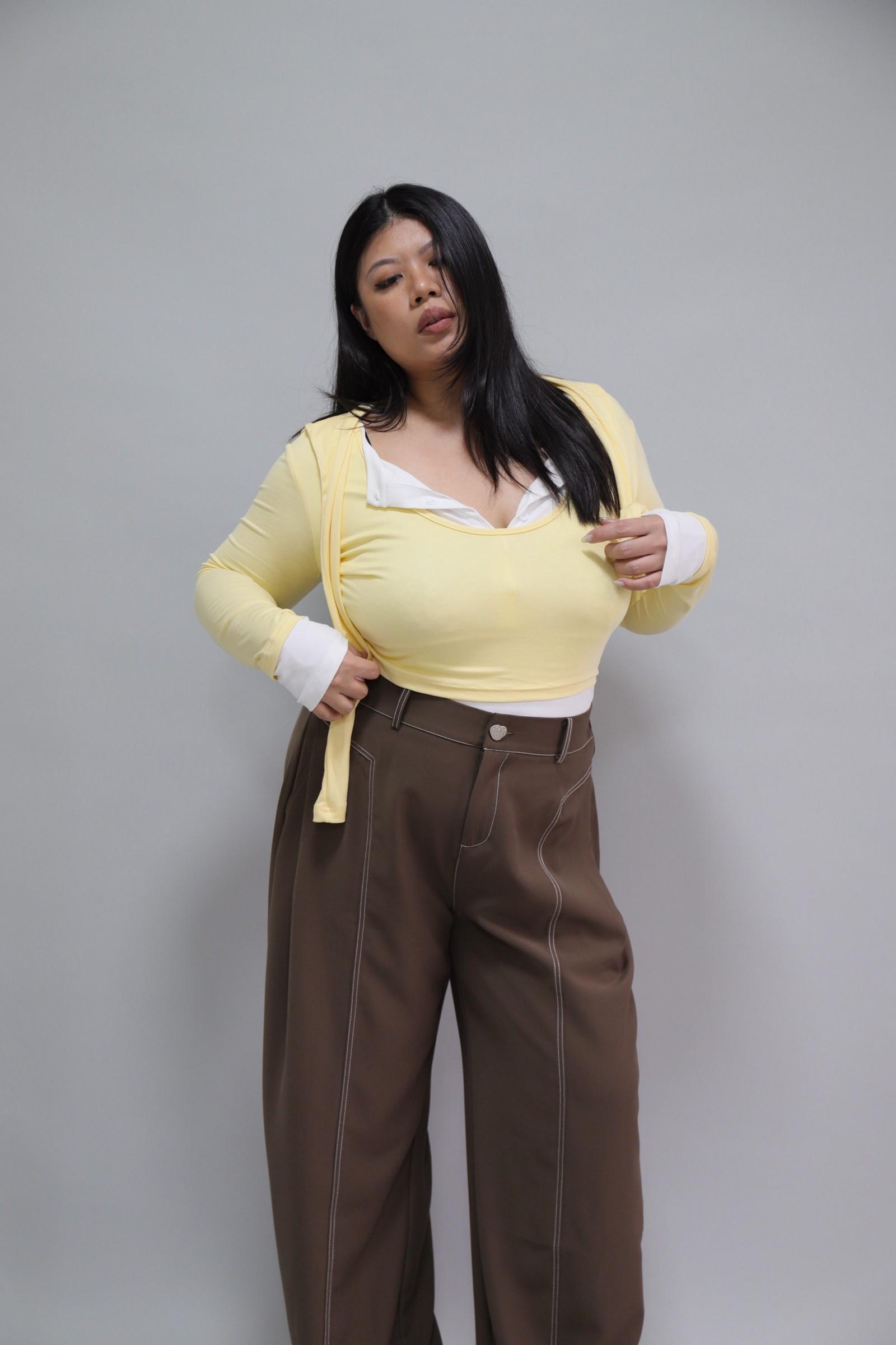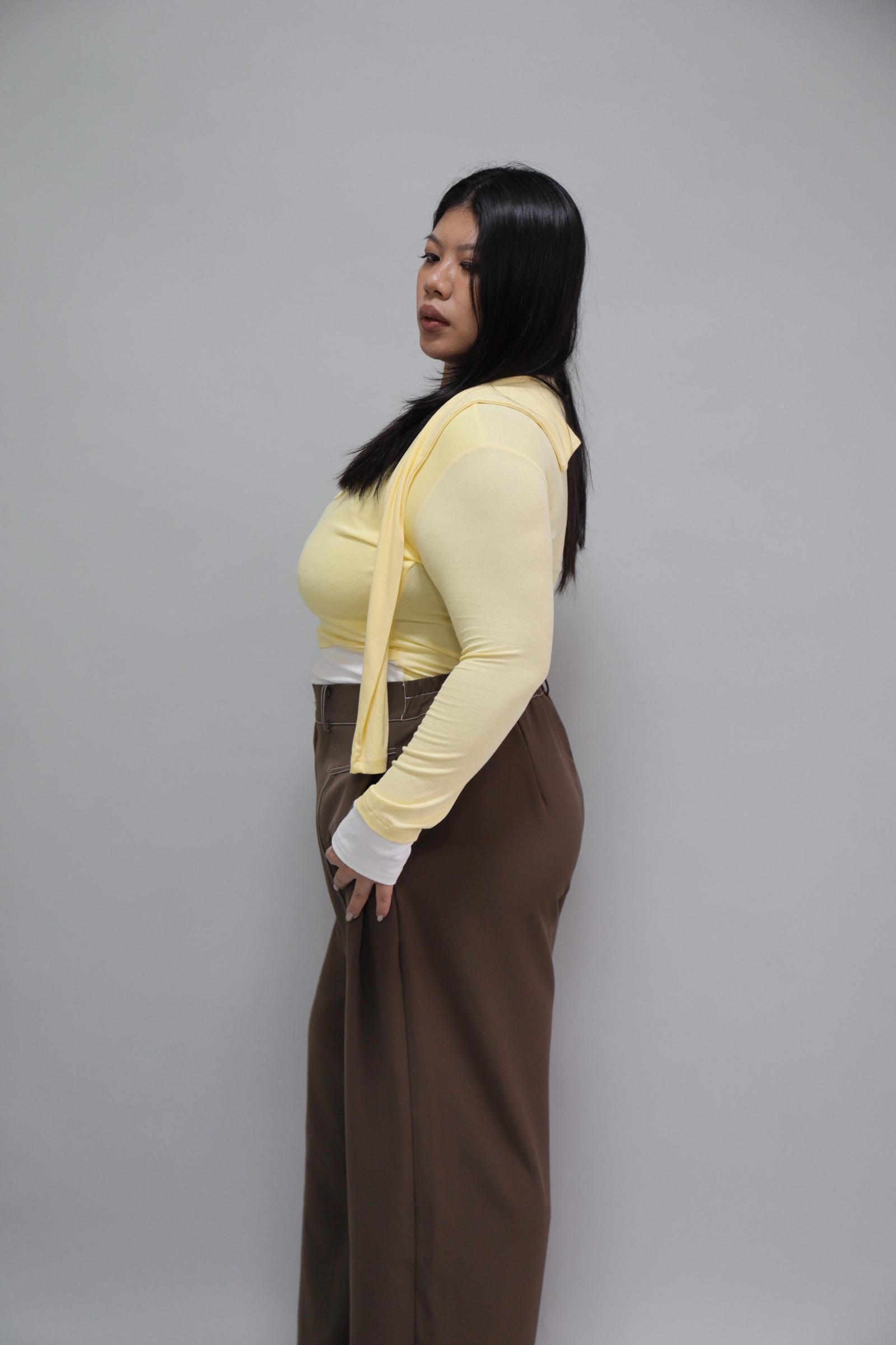 拼接撞色假兩件上衣-奶油黃,LEILASHAW 你的美不該被數字綁架