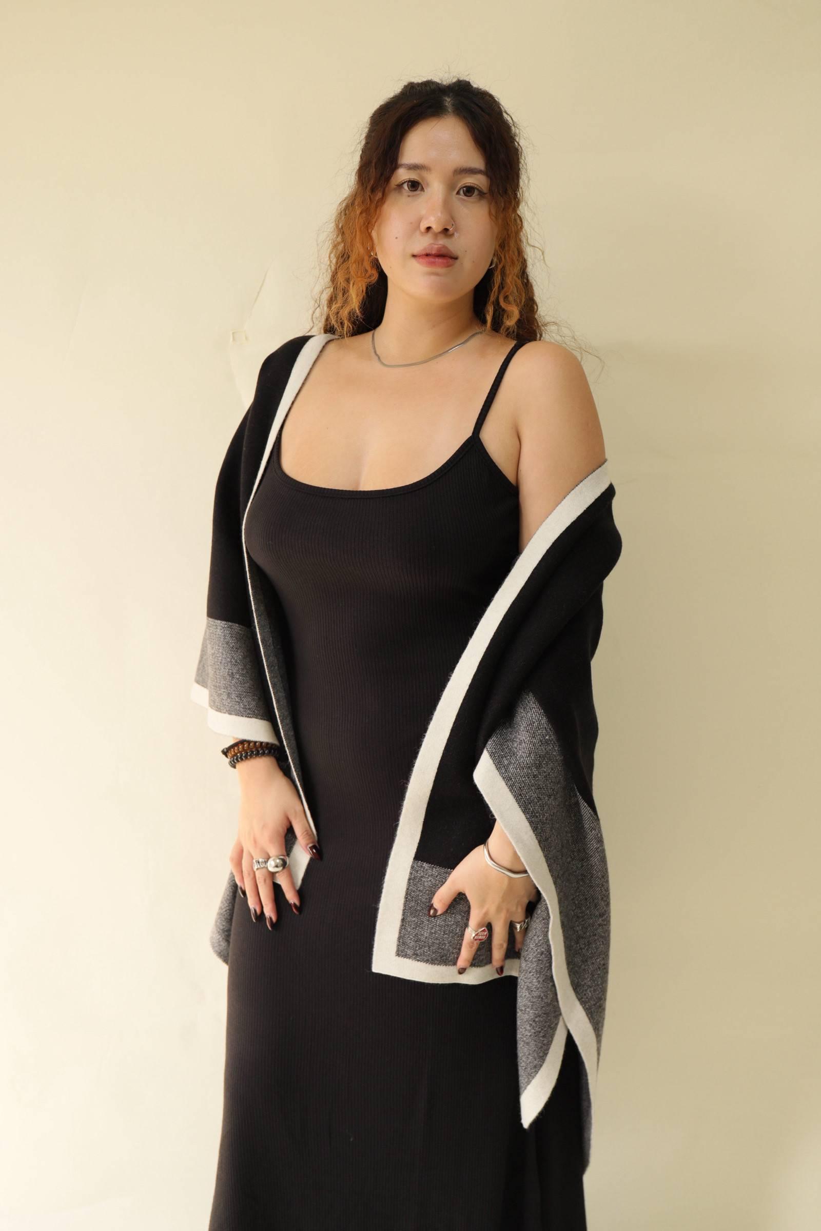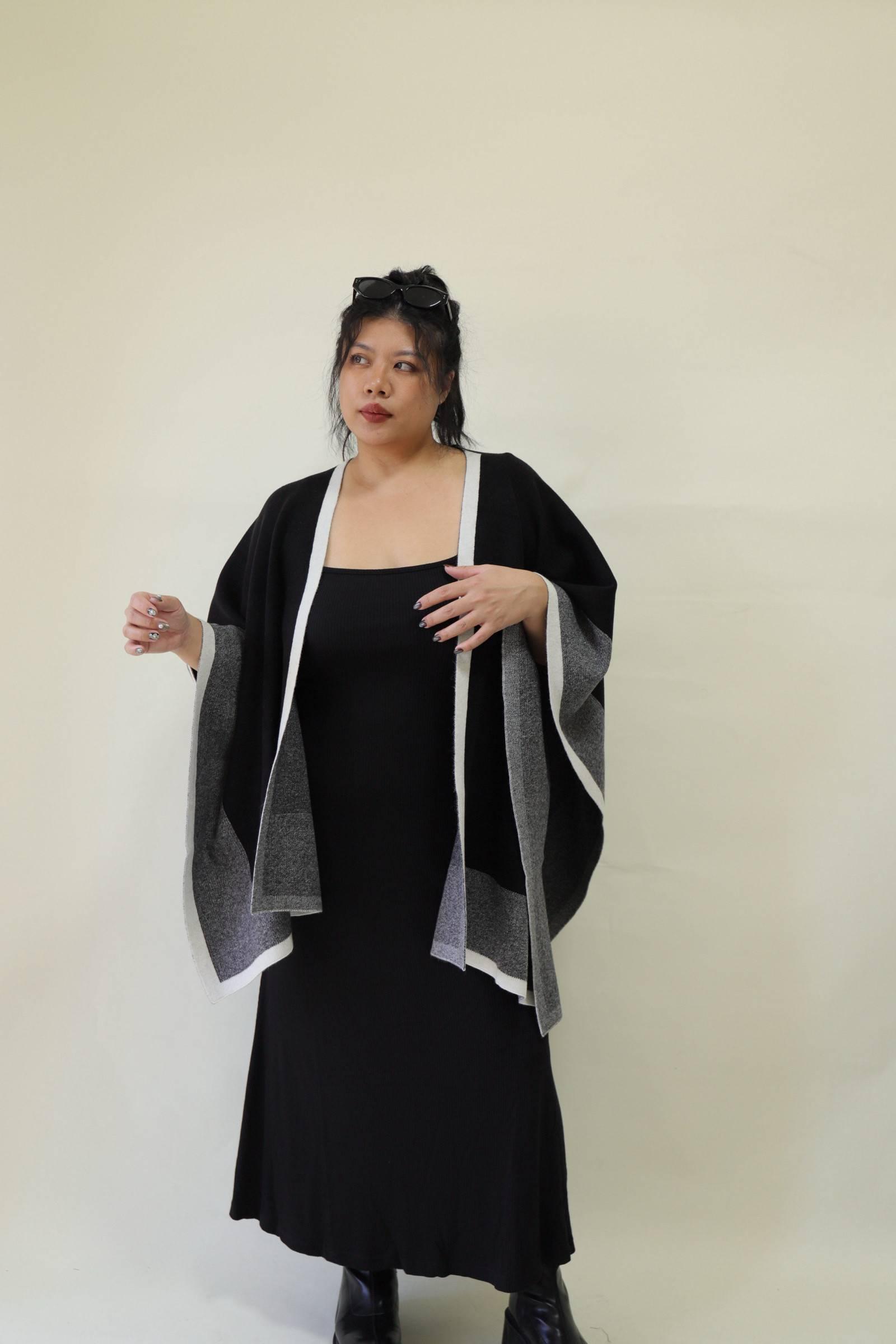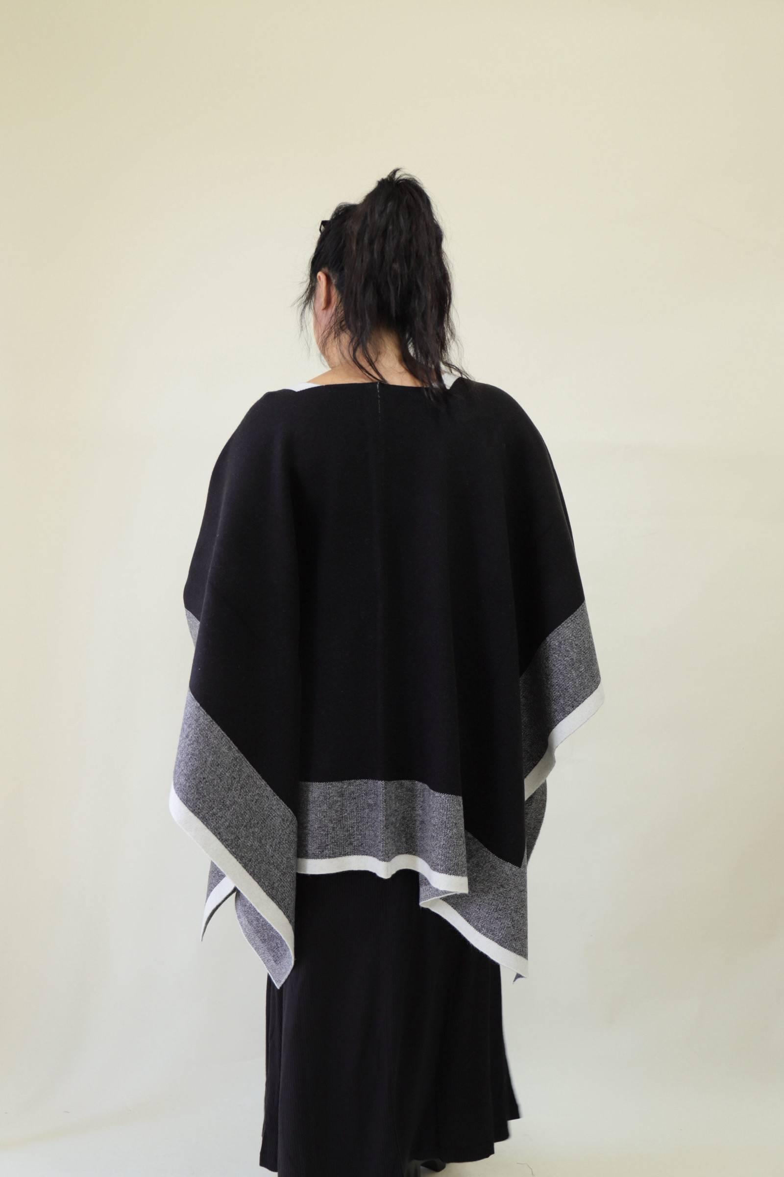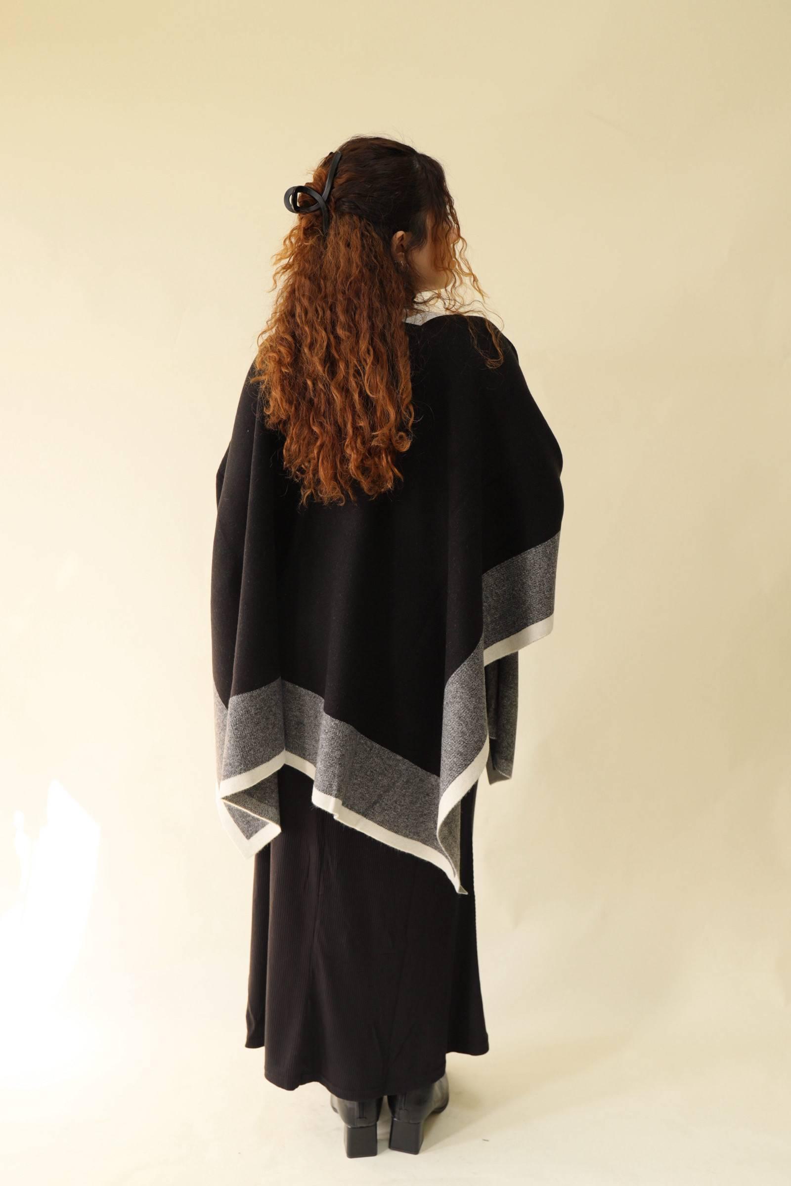 【門市試穿品】老錢風針織撞色斗篷披肩 (黑)