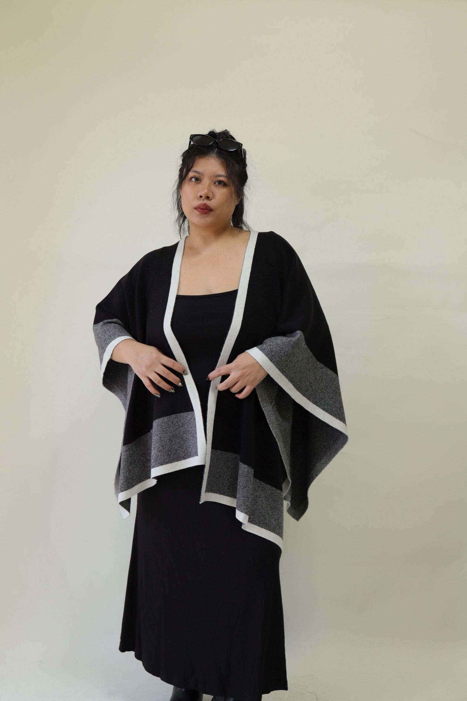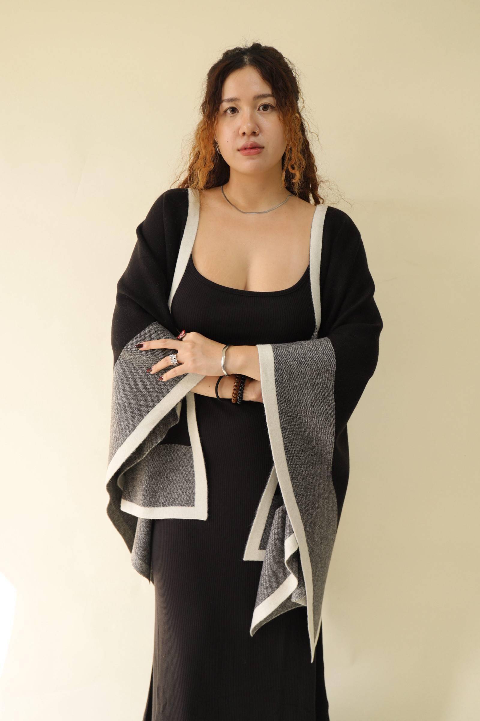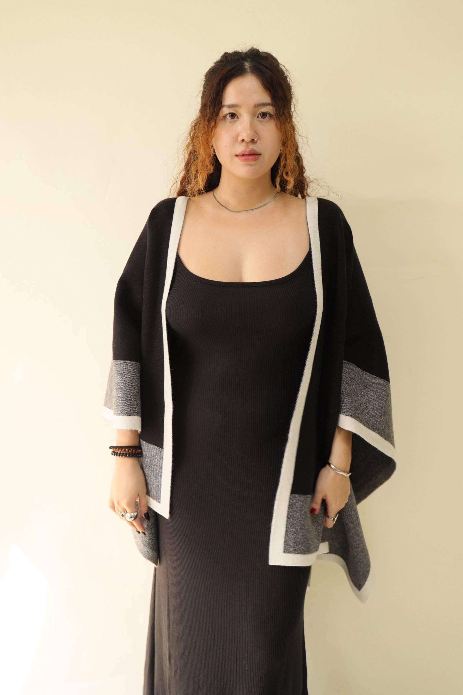 【門市試穿品】老錢風針織撞色斗篷披肩 (黑),LEILASHAW 你的美不該被數字綁架