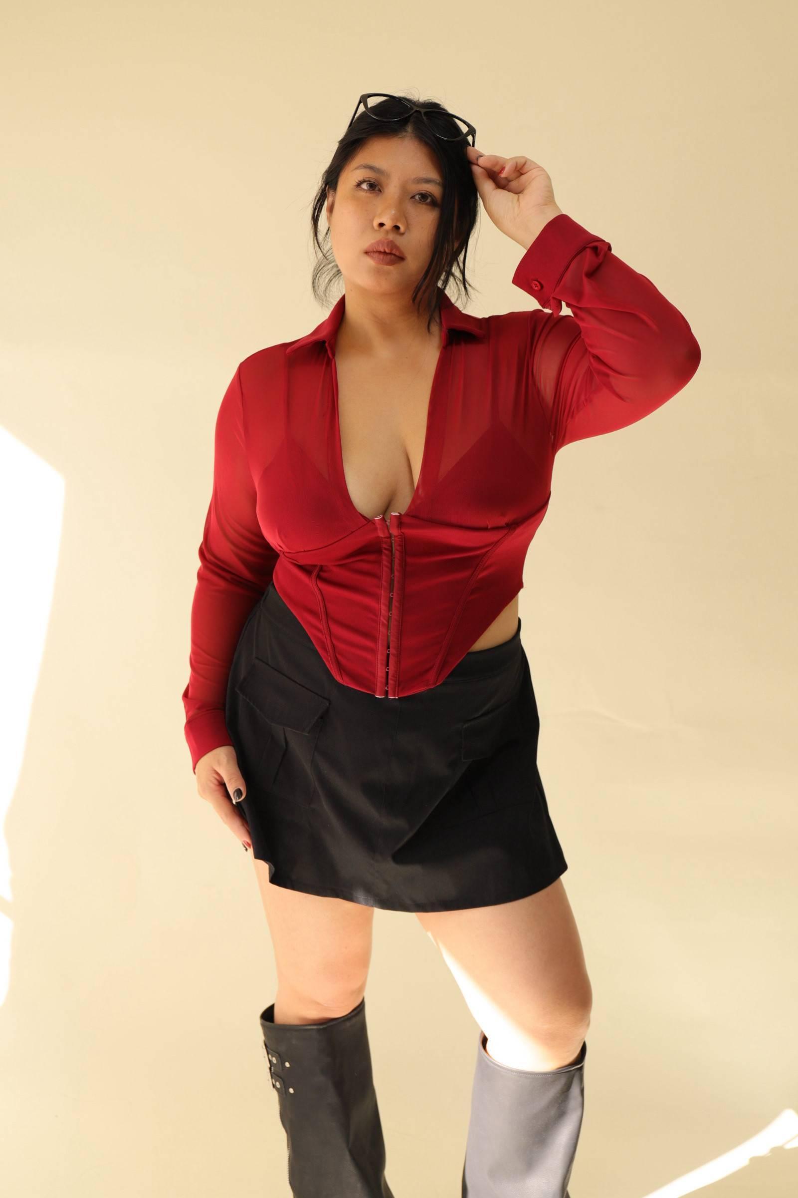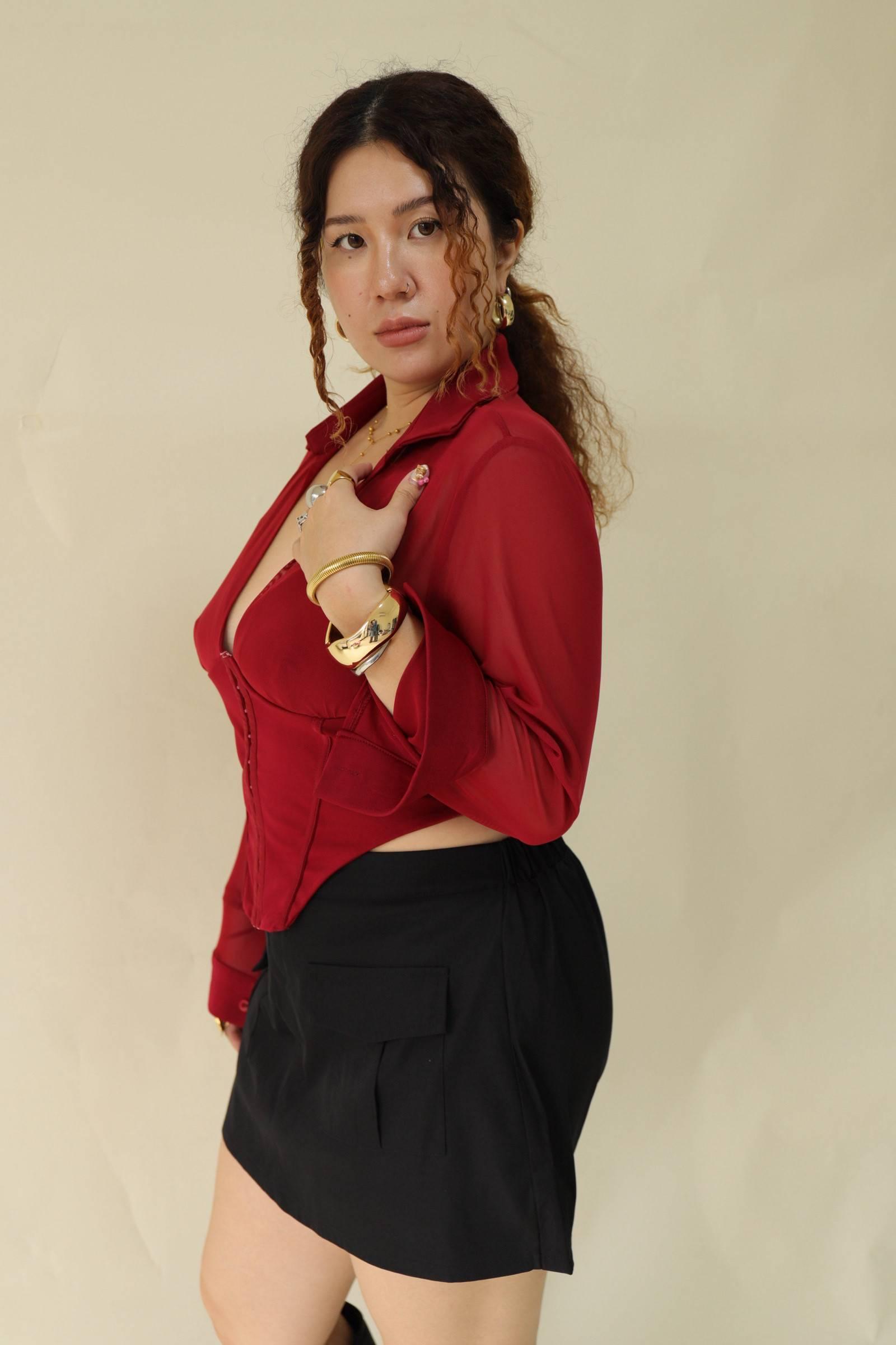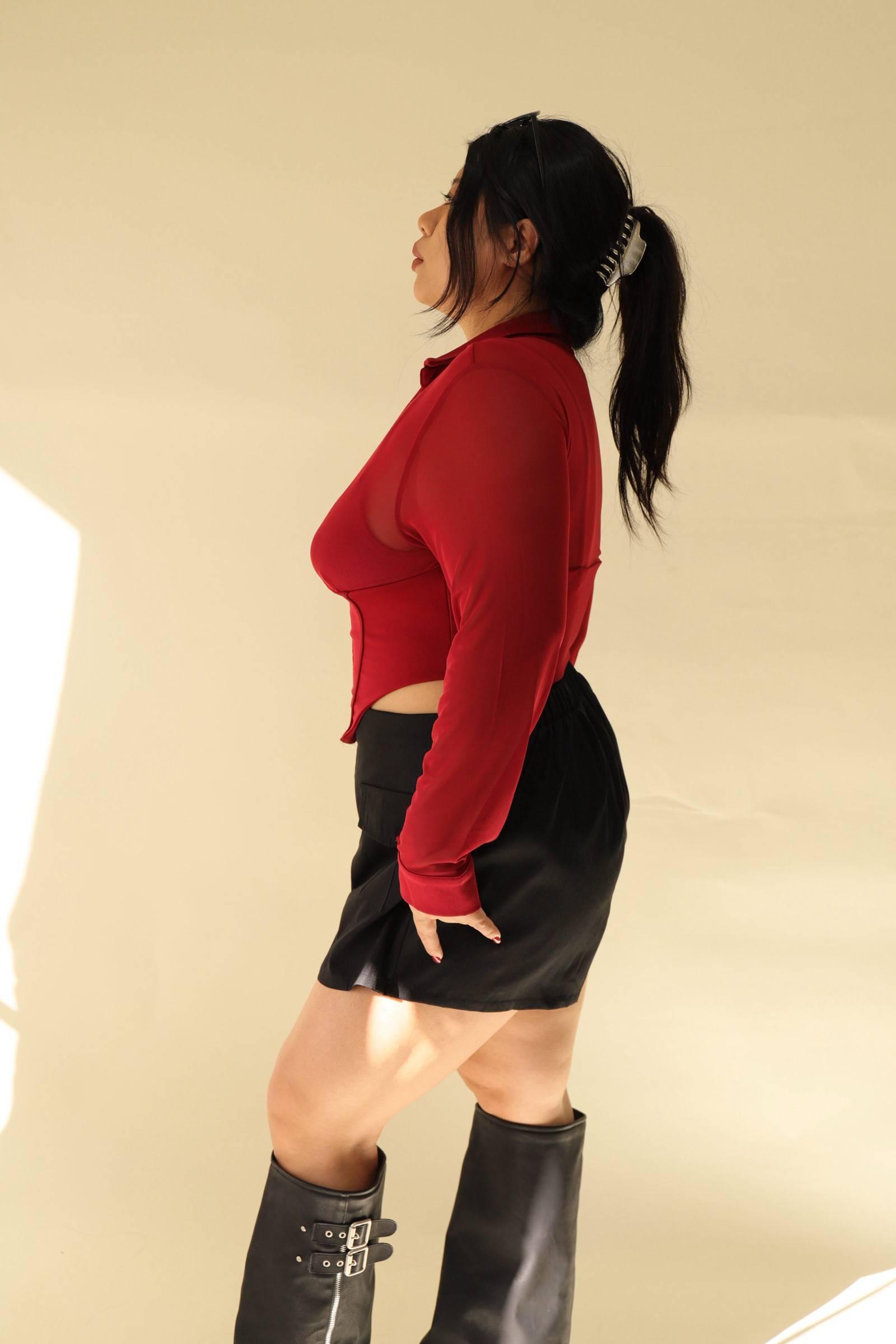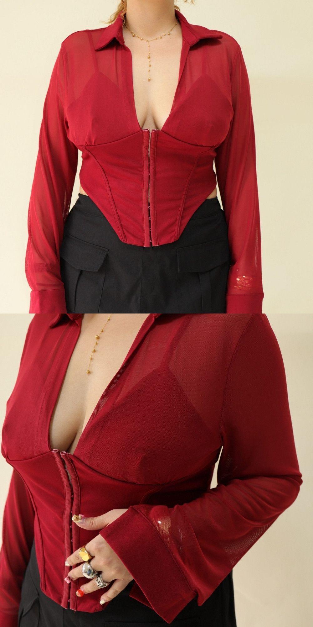 【門市試穿品】好辣深V魚骨收腰上衣,LEILASHAW 你的美不該被數字綁架