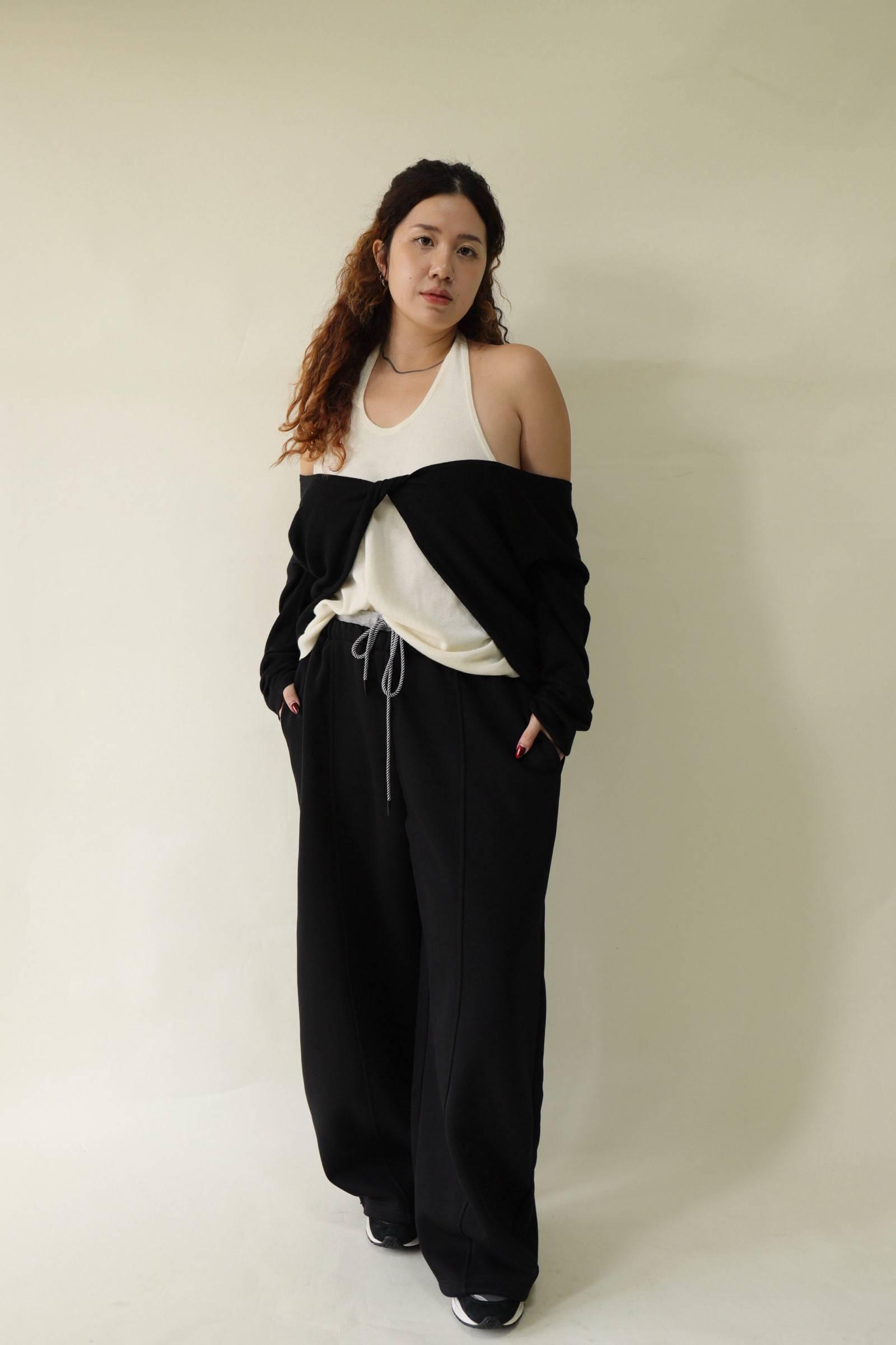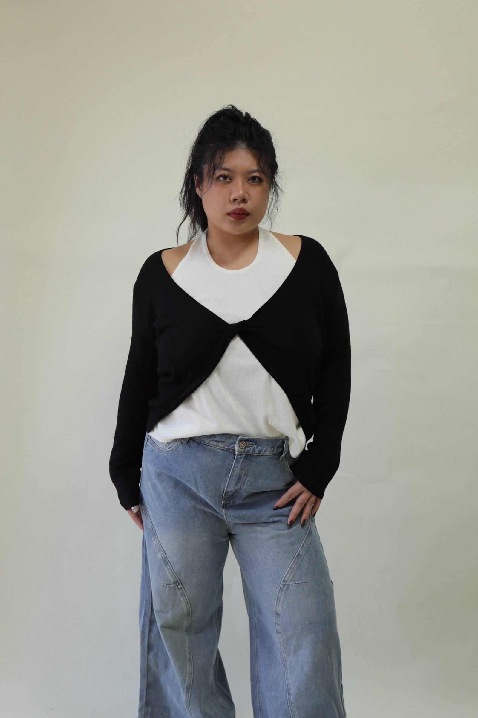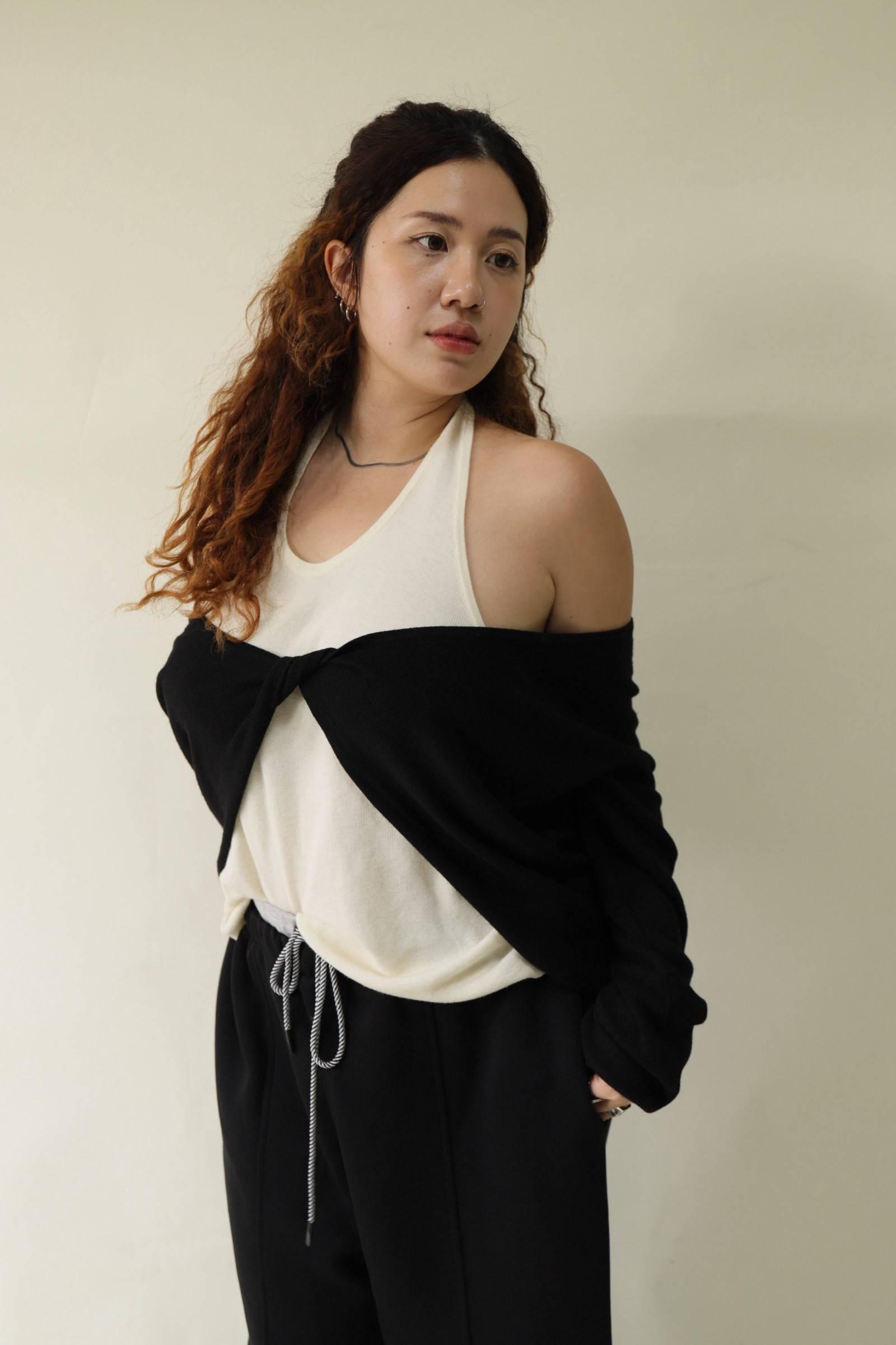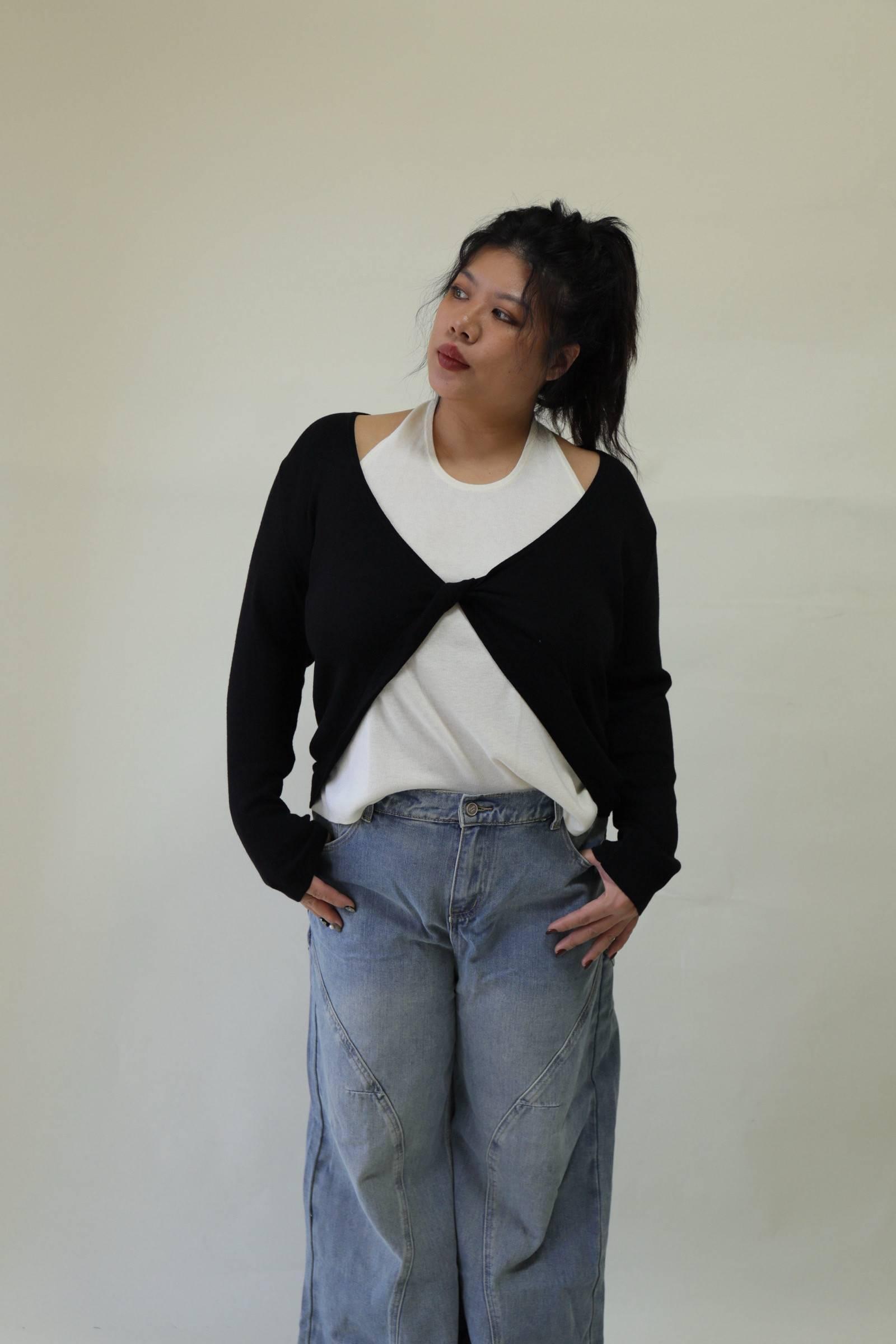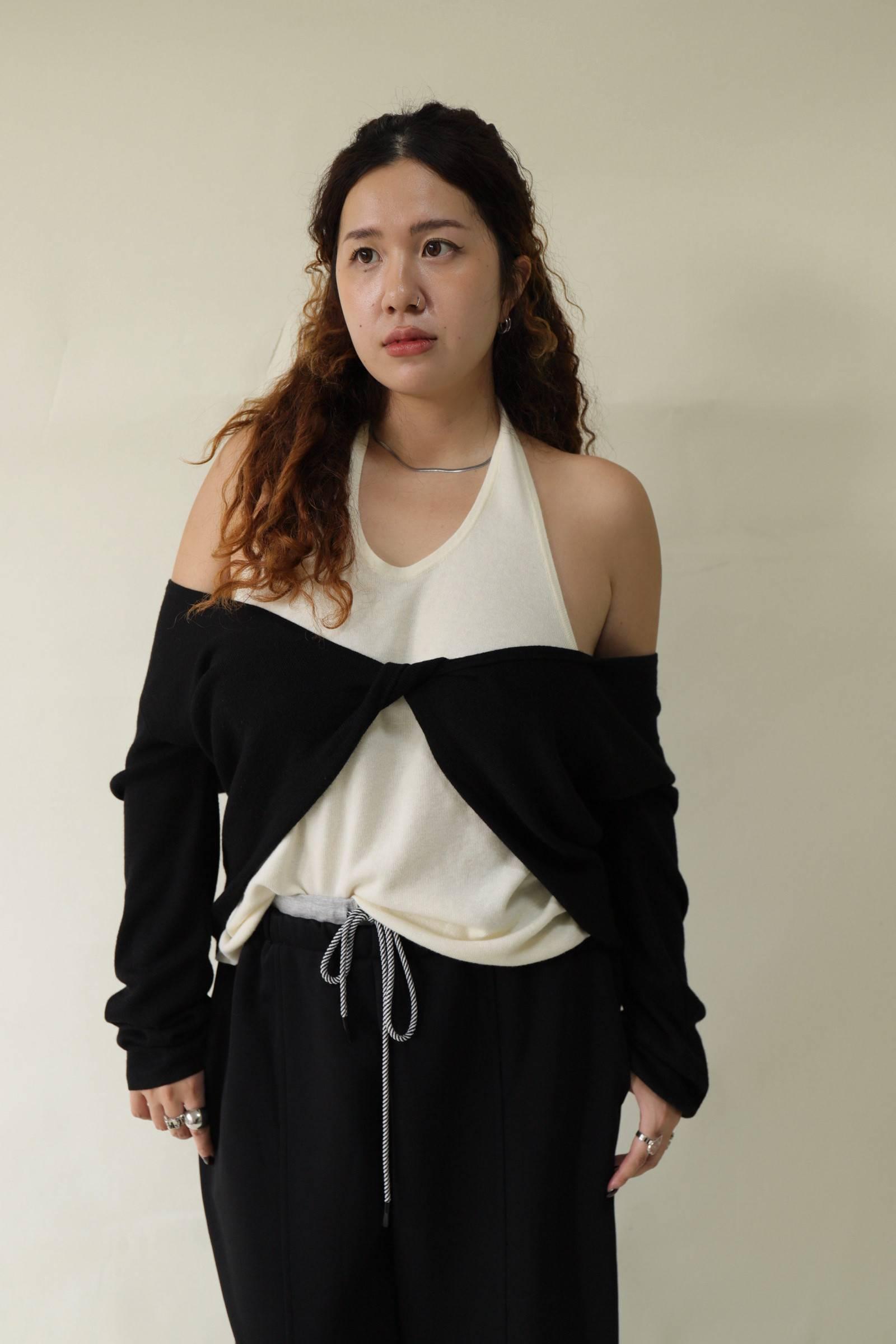 【門市試穿品】掛脖假兩件針織上衣 (黑),LEILASHAW 你的美不該被數字綁架