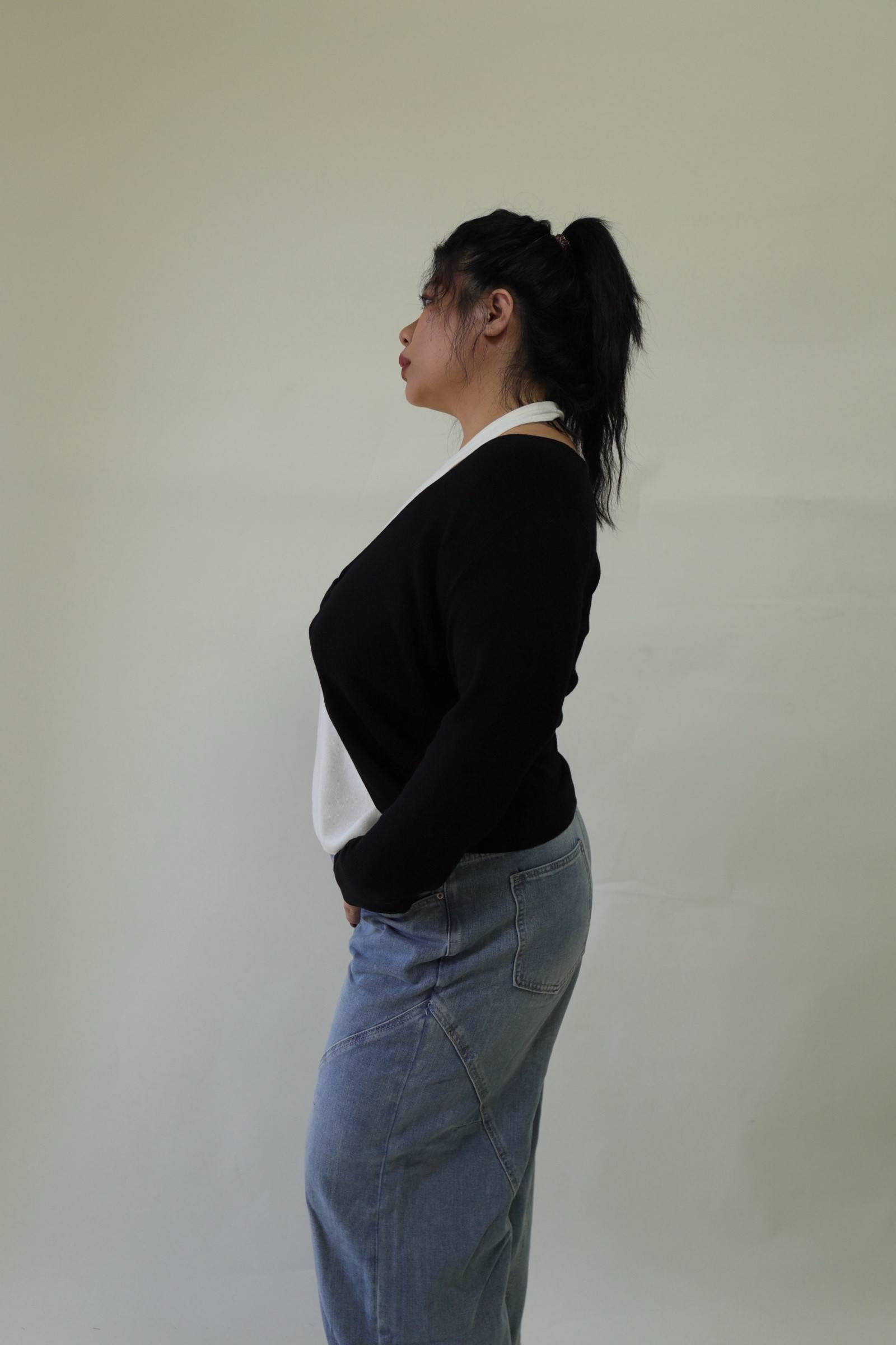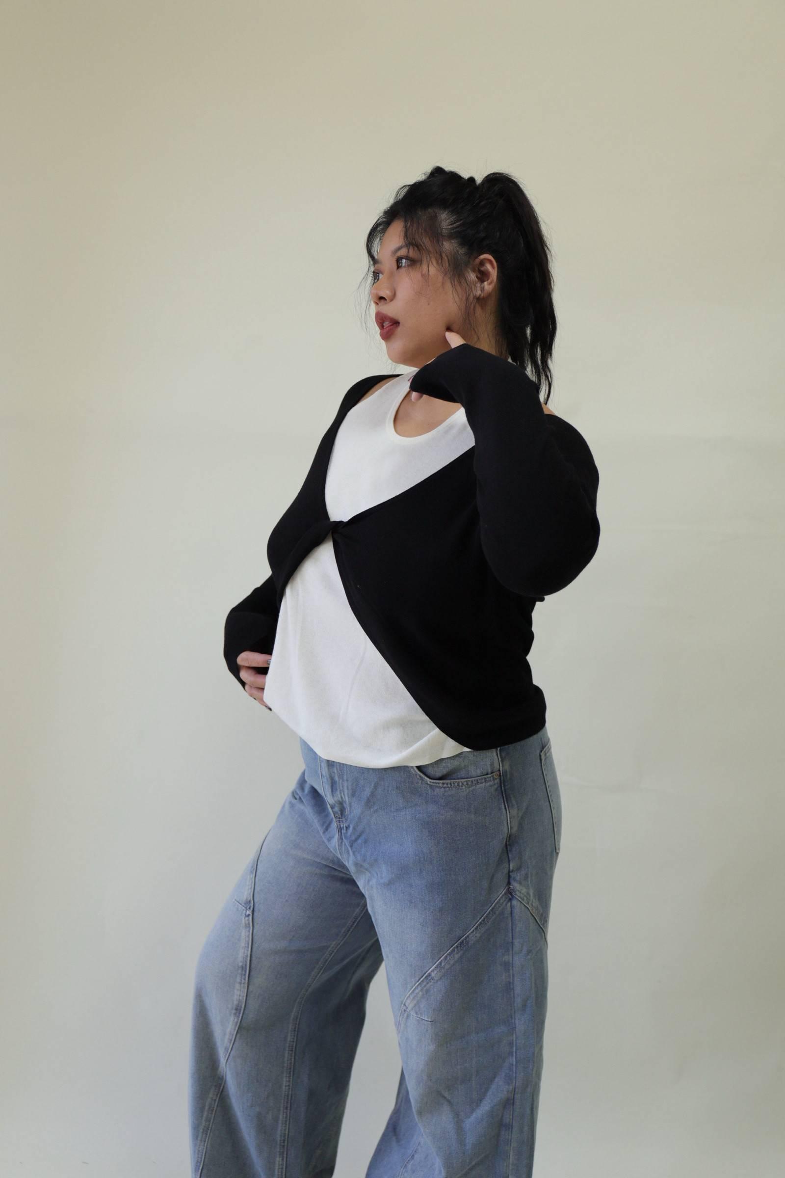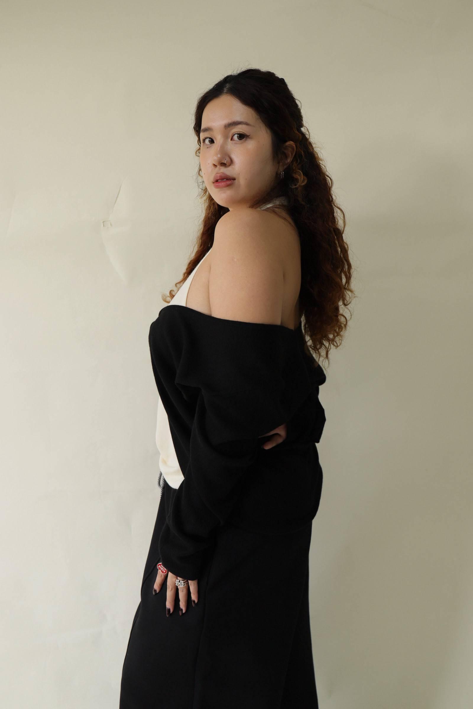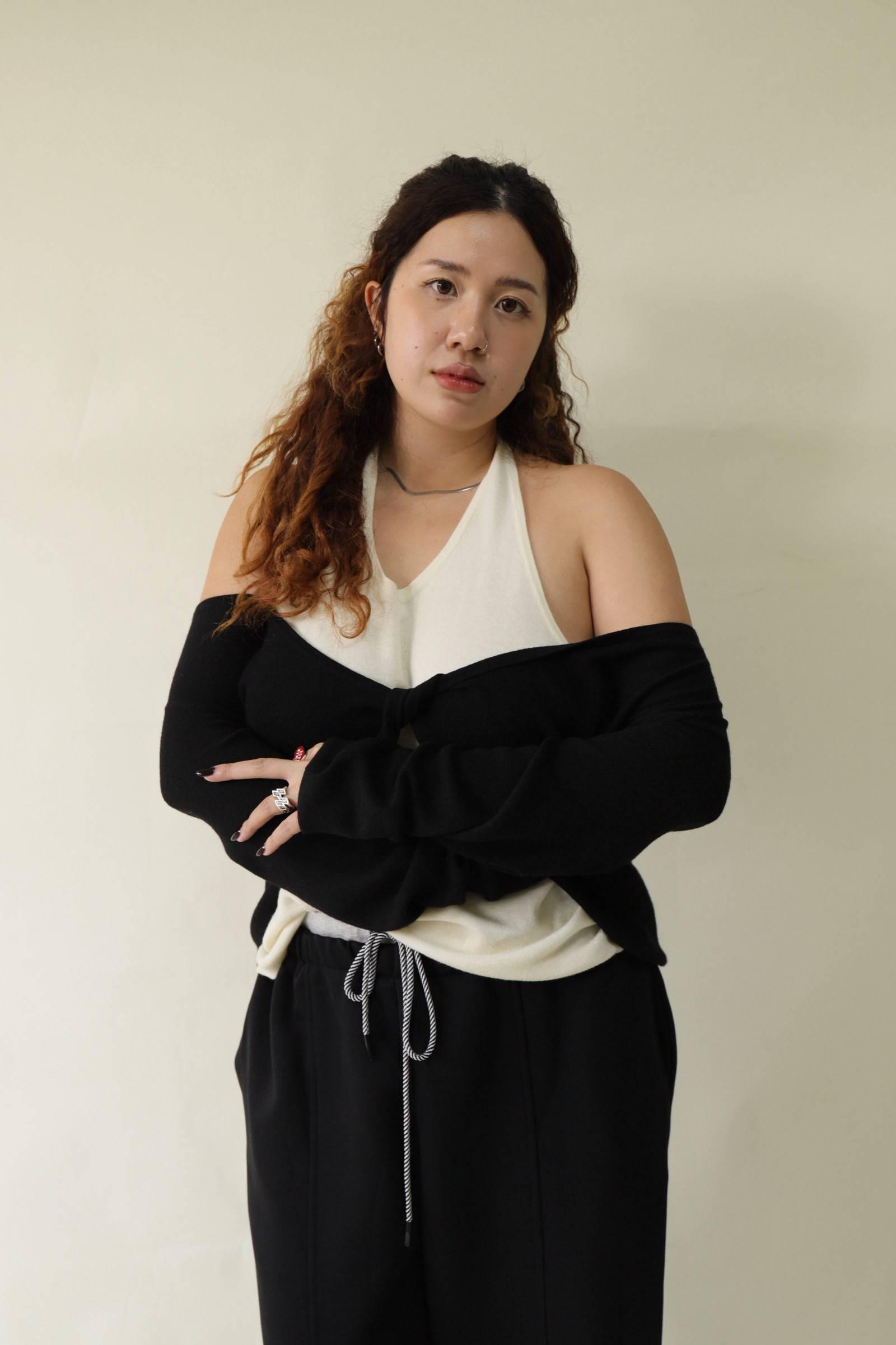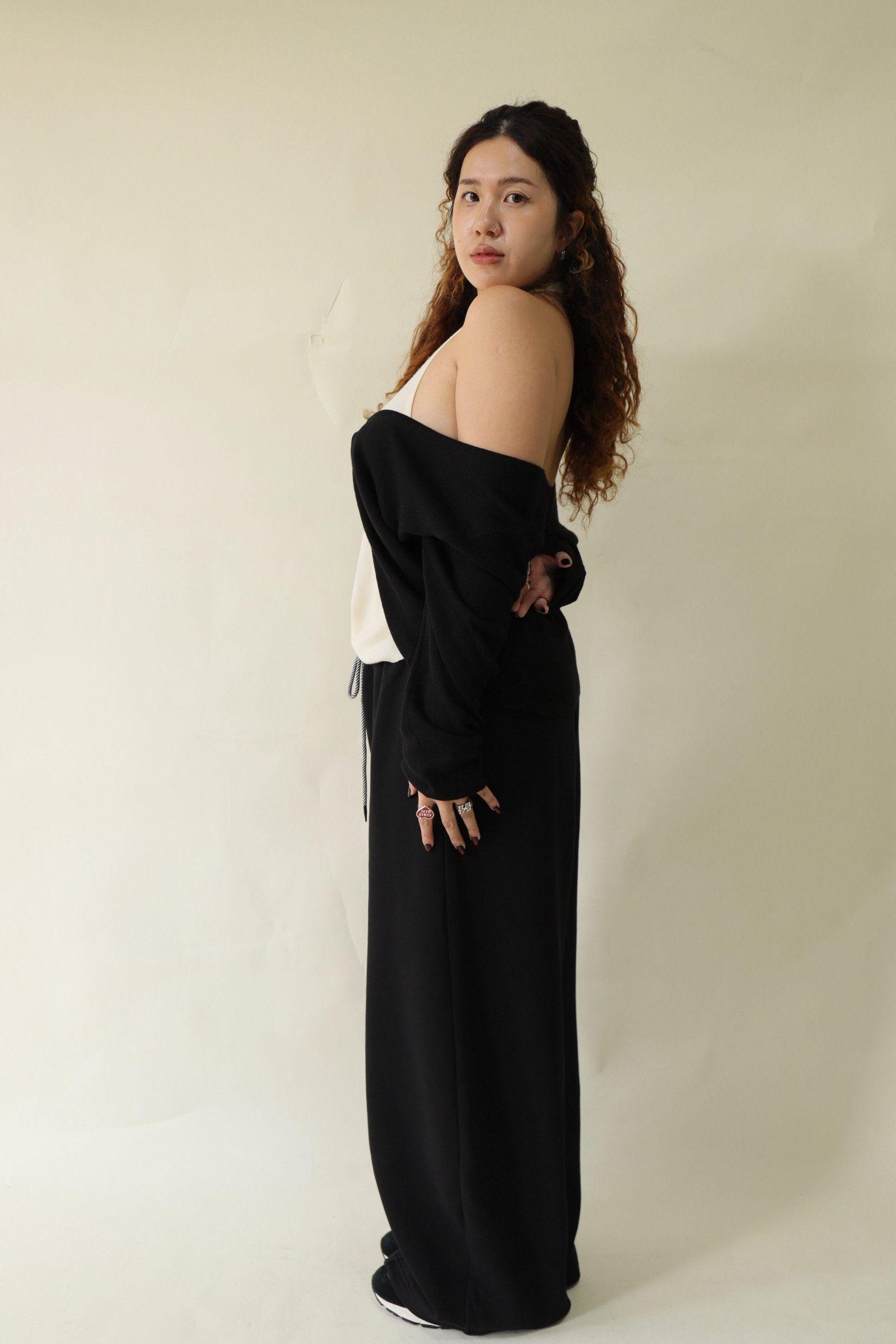 【門市試穿品】掛脖假兩件針織上衣 (黑),LEILASHAW 你的美不該被數字綁架
