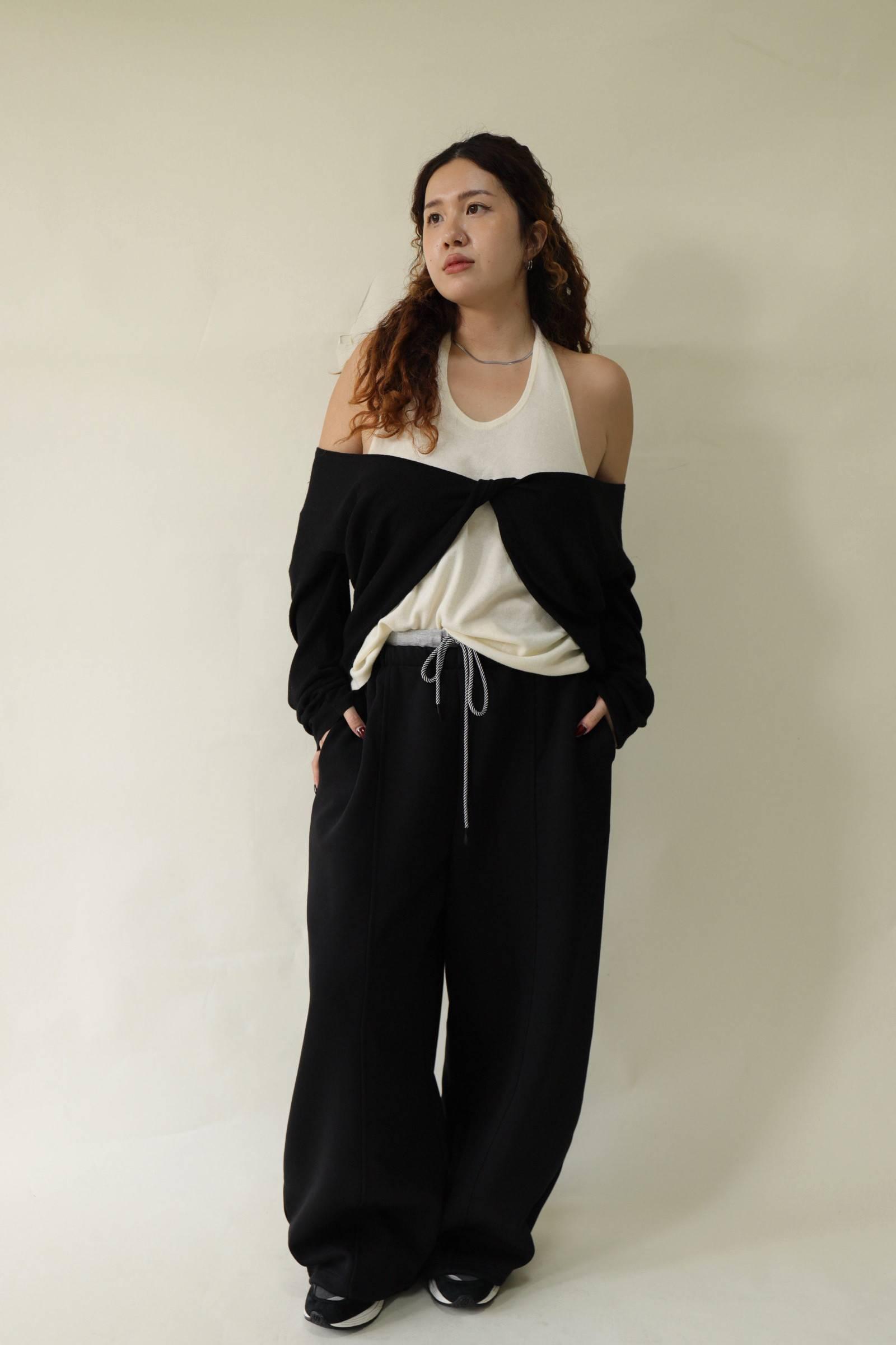 【門市試穿品】掛脖假兩件針織上衣 (黑)